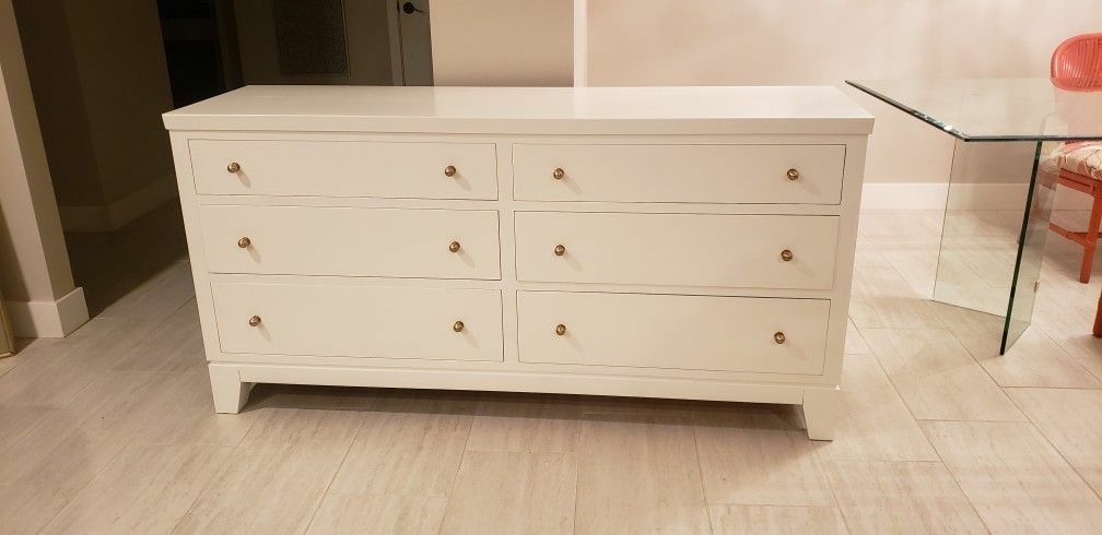 Exquisite large Ethan Allen 6 drawer dresser. Freshly painted, new champagne gold pulls and the drawers are pristine and work properly. 68W 19.5D 34H. Cross streets are Hayden and Chaparral in Scottsdale. ☆☆this is a solid wood heavy dresser. You will need to bring strong muscle to load it☆☆