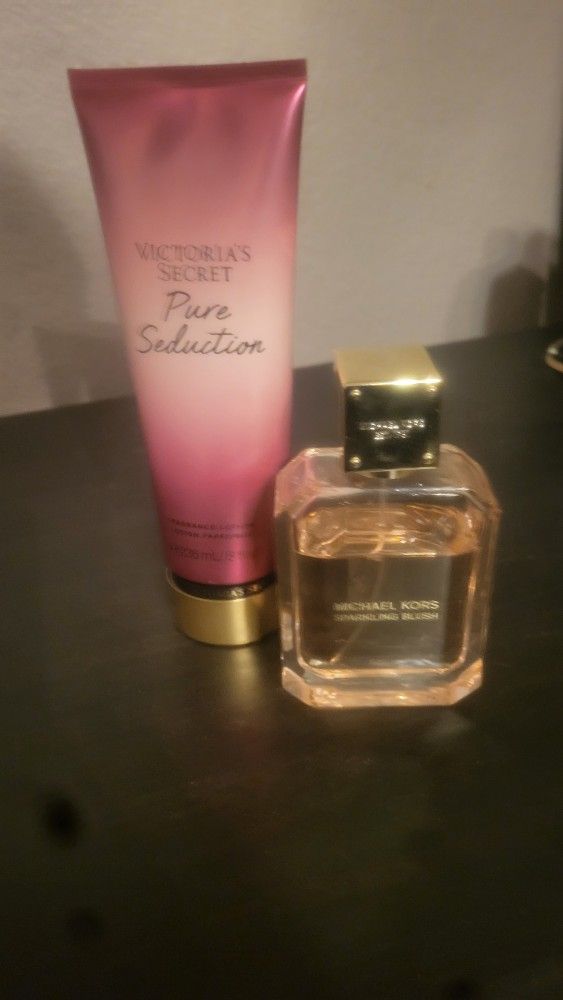 New, Victoria secret lotion. Used Michael Kors, Sparkling Blush perfume 3.4oz bottle. $25 all