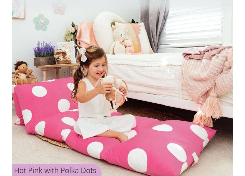 Butterfly Craze Floor Pillow Case, Mattress Bed Lounger Cover, Polka Hot Pink, queen Size - Cozy Seating Solution for Kids & Adults, Recliner Cushion, for Reading, TV Time (Pillow Not Included)