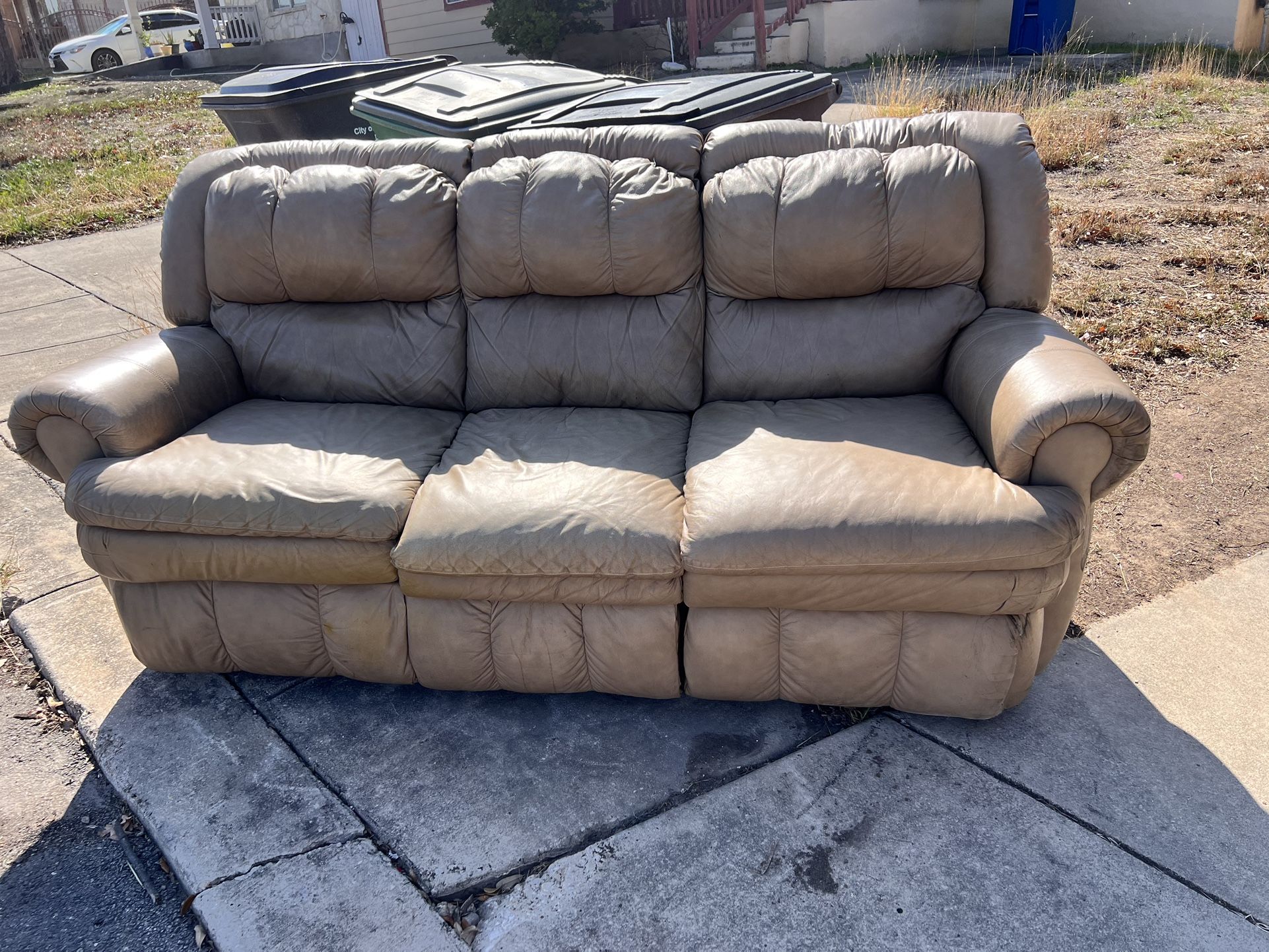 Free reclining couch. The lever to recline is in between the seats. Just needs a good cleaning. 7/10 condition (perfectly functional) Must bring help to lift. It’s quite heavy. Must pick up. (At the end of the street) San Pablo PL San Antonio TX 78237