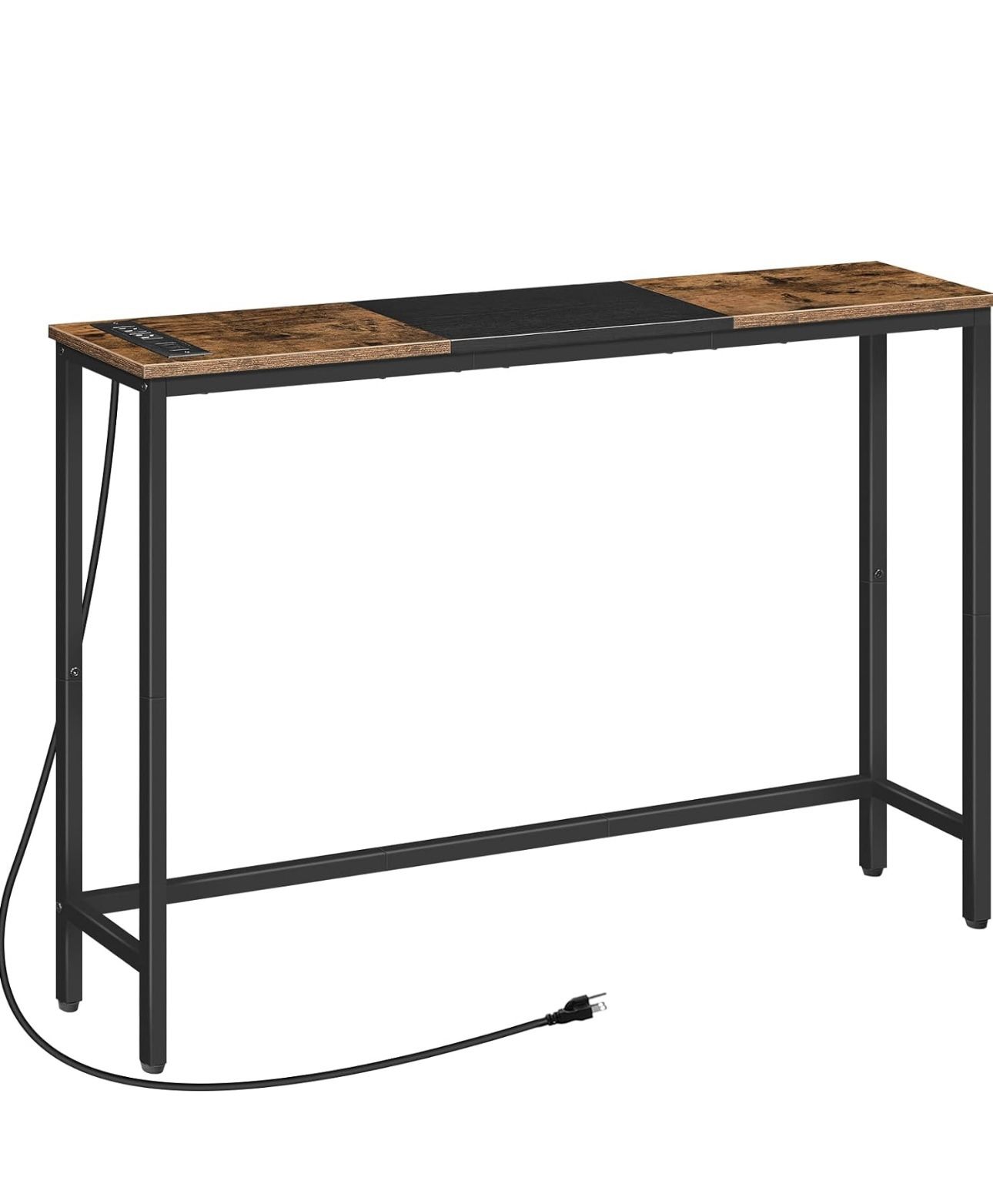 HOOBRO Narrow Console Table with Power Outlets, 44.9-Inch Sofa Table, Slim Behind Couch Table, Entryway Display Shelf, for Living Room, Foyer, Hallway, Rustic Brown and Black
