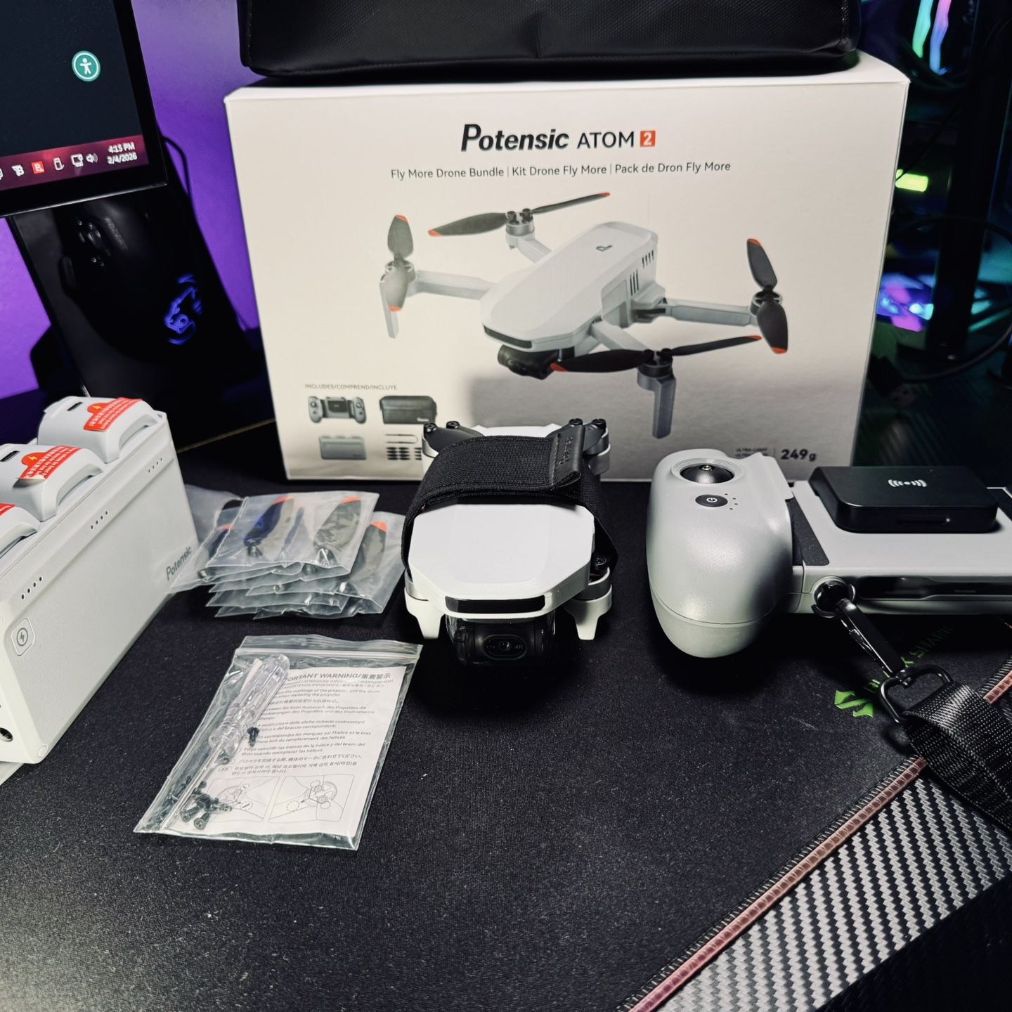 Basically new… flew a few times and switch to a different drone. Comes with some extras: 32gb microSD Neckstrap Extra Propeller