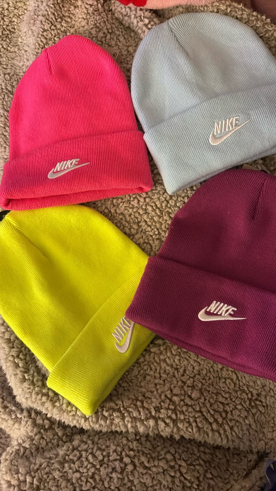Nike Beanie Hats $25 Each Colors: - Purple - Neon Green (SOLD)!! - Frost Blue (SOLD)!! - Neon Pink
