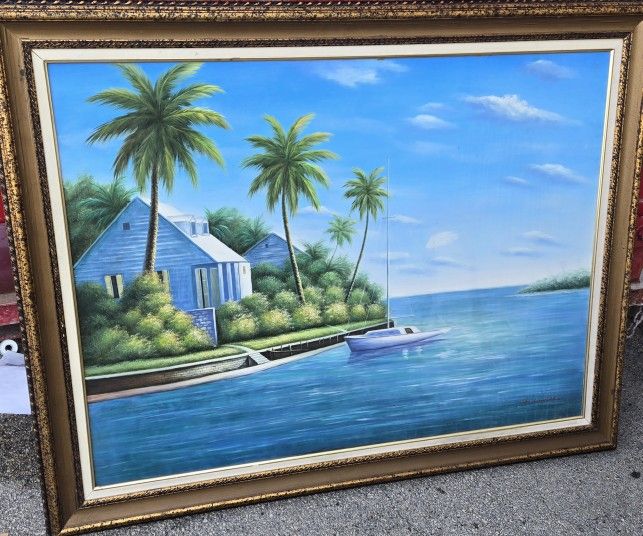 Caribbean Painting Really nice Vacation Home Favorite Island Living,, large Wall Hanger Sell for $350