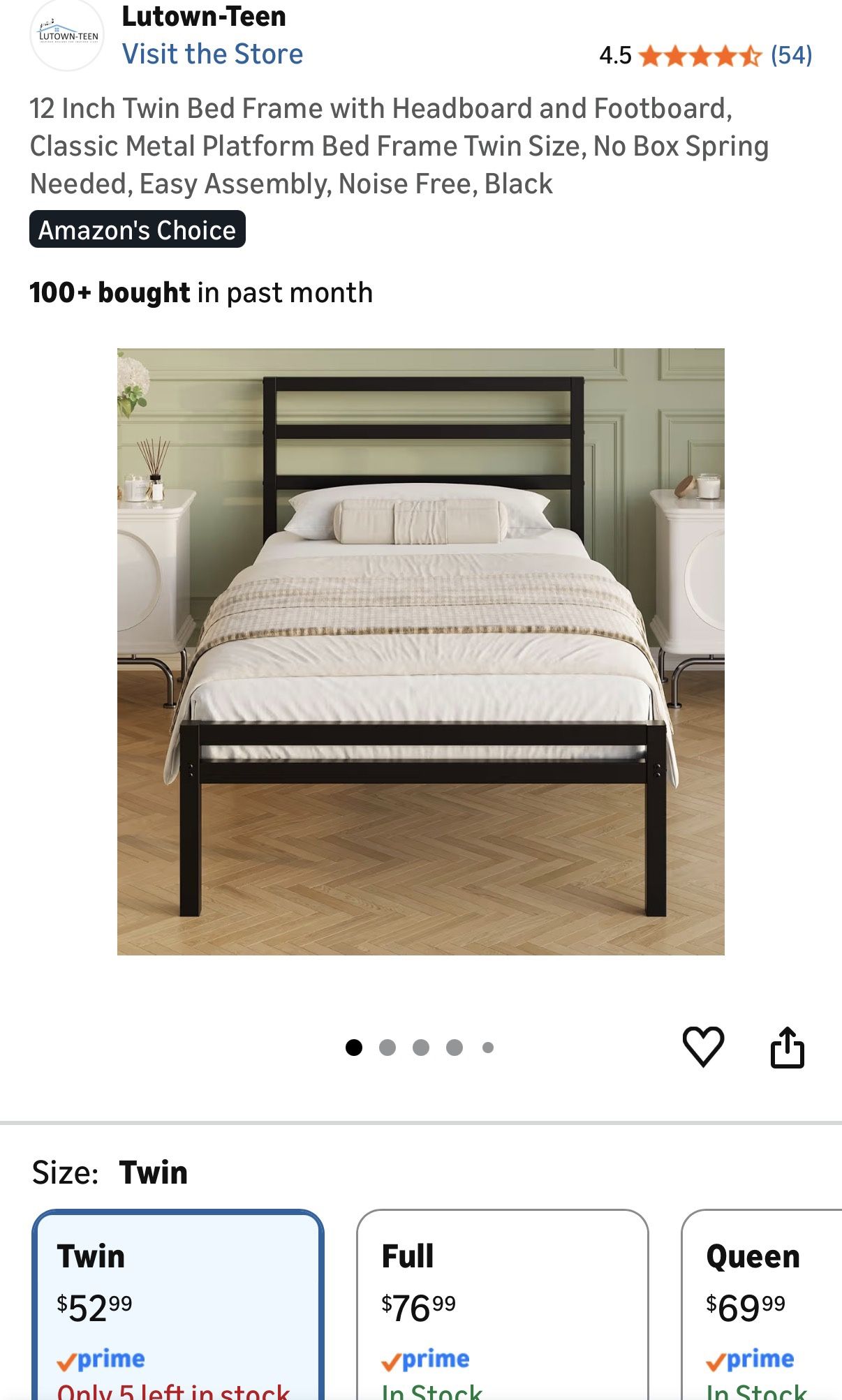 12 Inch Twin Bed Frame with Headboard and Footboard, Classic Metal Platform Bed Frame Twin Size, No Box Spring Needed, Easy Assembly, Noise Free, Black