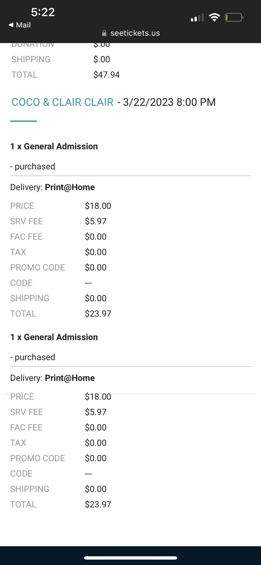 Have two tickets for Coco & Clair Clair. $50 for both lmk