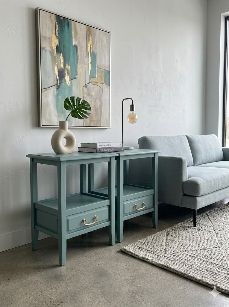 Two end tables/nightstands One drawer Two tiered Color: custom blue gray with a hint of green Pick up in cypress ca