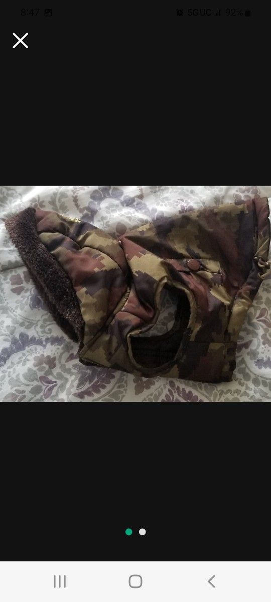 Cute, camouflage puppy jacket, size small.
