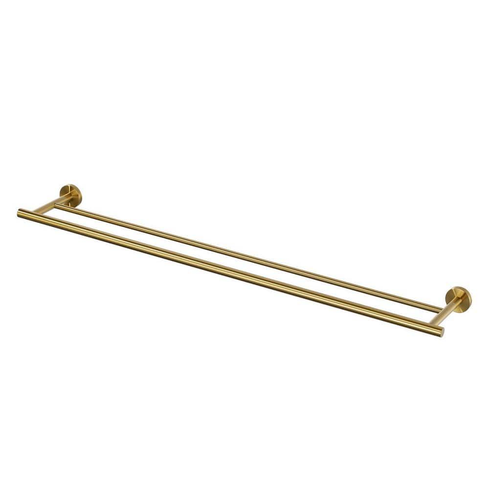 About This Product With its elegant modern design, this double towel bar is both a decorative and practical choice for any bathroom. Made from high-quality stainless steel, this bathroom towel bar features a refined brushed gold finish that adds a calm, modern look while blending easily with different bathroom styles. The smooth, rounded design provides a comfortable touch and helps reduce accidental scratches, while enhancing the clean and minimalist appearance of the towel bar. Its double towel bar design increases hanging space, allowing bath towels, hand towels, and washcloths to stay neat and well organized. Built with durable stainless steel, this wall mounted towel bar offers excellent resistance to rust and water. The protective finish helps prevent corrosion and ensures long-lasting strength and stability, keeping the towel bar looking new even with daily use. Highlights • Durable material: Bathroom towel bar is made of high quality stainless steel for durability • Double-layer space: Double towel bar design provides more hanging space than single bars • Load-bearing capacity: Heavy duty towel bar supports up to 30 lbs for bath and hand towels • Wall mounted: Screw mounted towel bar ensures stable and secure wall installation • Multiple choice: Multiple towel bar length options fit different bathroom spaces • Easy to install: Towel bar includes mounting hardware and instructions for easy install Dimensions Bar Length (in.) 36 Product Depth (in.) 6.1 in Product Height (in.) 2 in Product Length (in.) 36 in Details Bath Accessory Type Towel Bar Color Family Gold Color/Finish Gold Features Double Rod Finish Family Brushed Included Mounting Hardware Installation Type Screw-In Mount Post Shape Round Mount Type Wall Mounted Number of Towel Holders Double Number of Towel Holders Double Pack Size 1 Returnable 30-Day Weight Capacity (lb.) 30 lb 410180G-36