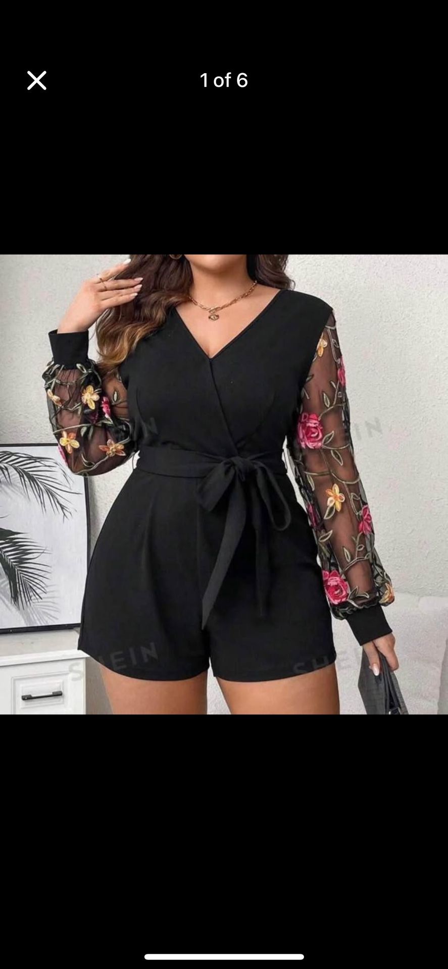 New with no tags, plus size 0XL shorts jumper. Stretch fabric, the long sleeves are see through and have a floral design. Pick up is in Bolingbrook.