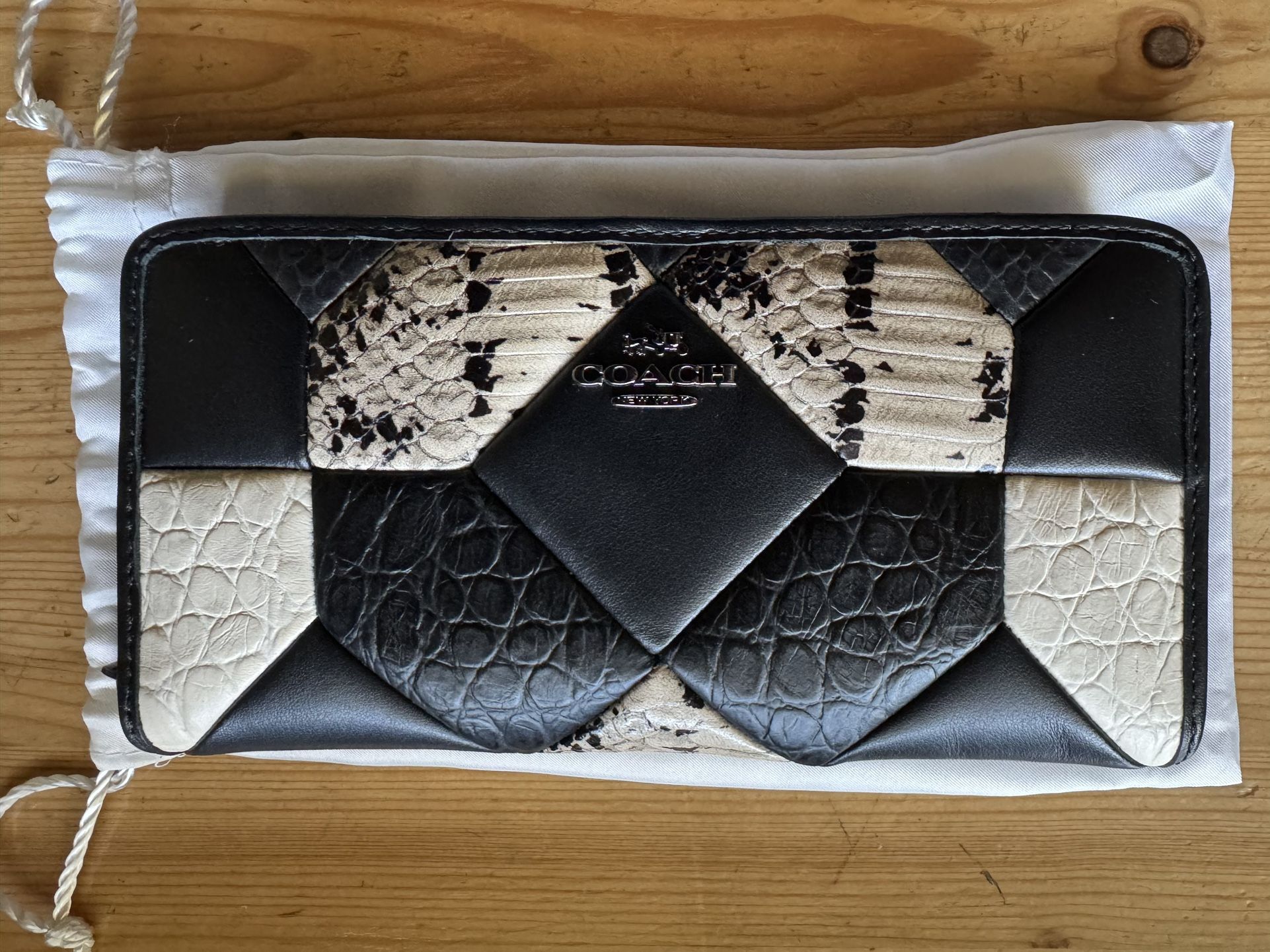 Coach Leather Accordion Zipper Wallet -Style # 53985 -Exotic-embossed leather -12 credit card slots -Full-length bill compartments -Zip coin pocket -Zip-around closure -7 3/4" (L) x 4" (H) x 1" (W)