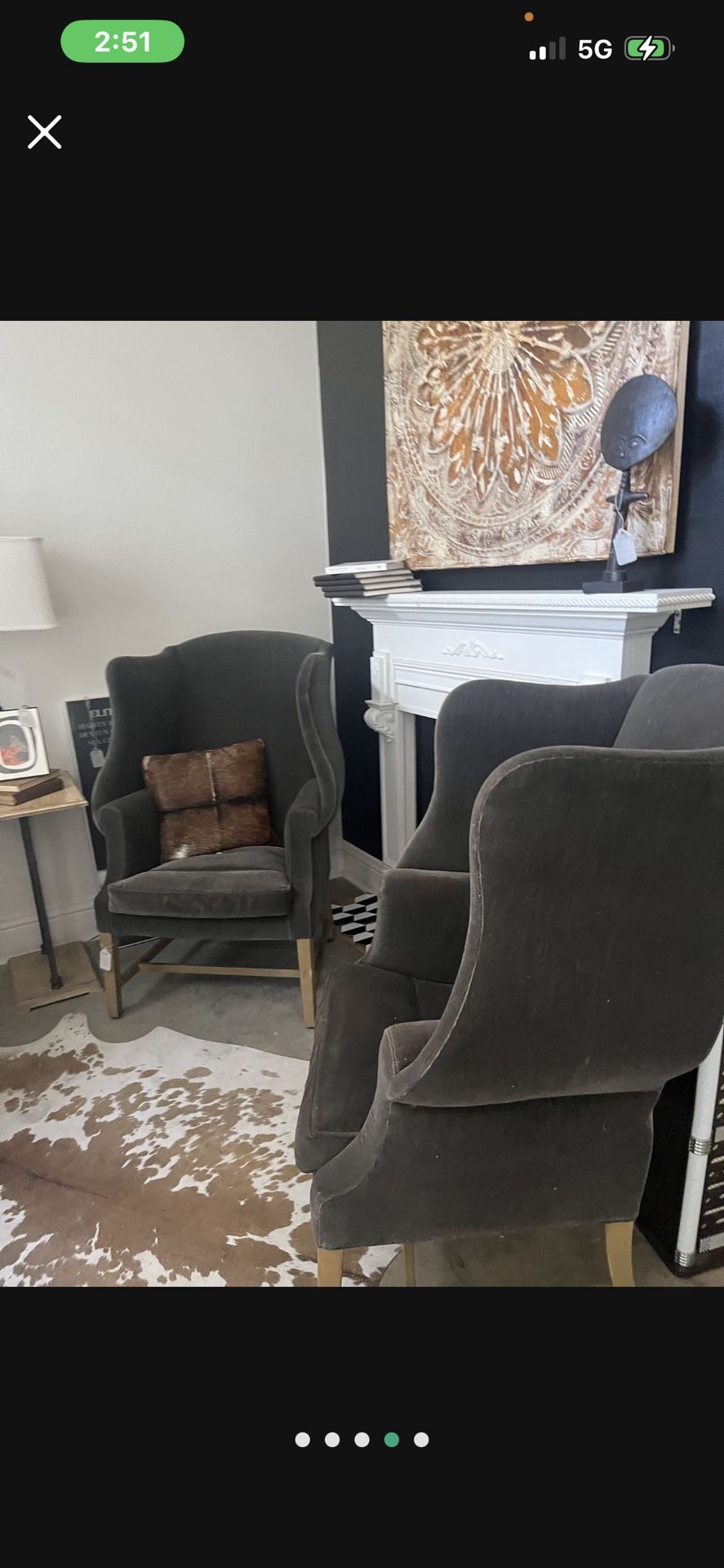 Grey wingbacks, Restoration Hardware style. In great condition. 2 for $200