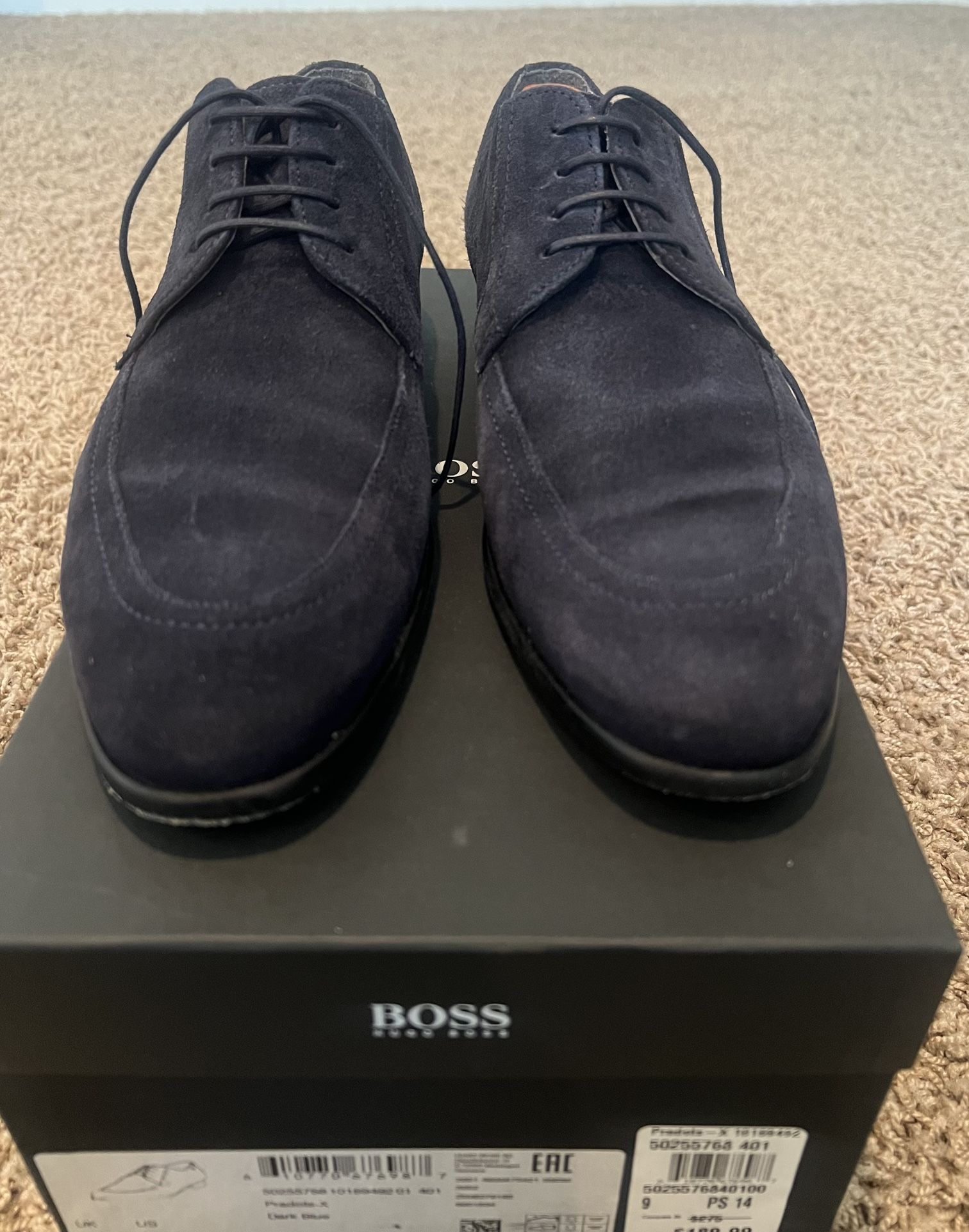 HUGO BOSS Pradots-X Dark Blue Suede Derby Almond Toe Men's Dress Shoes US 9