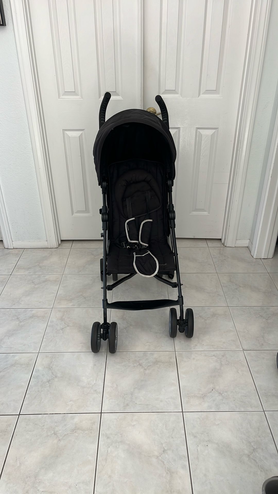 This stroller has help me through my 1st year. I took this stroller everywhere. It does have some stains but it gets the job done. It has a rear end and front. Easy to fold and unfold.