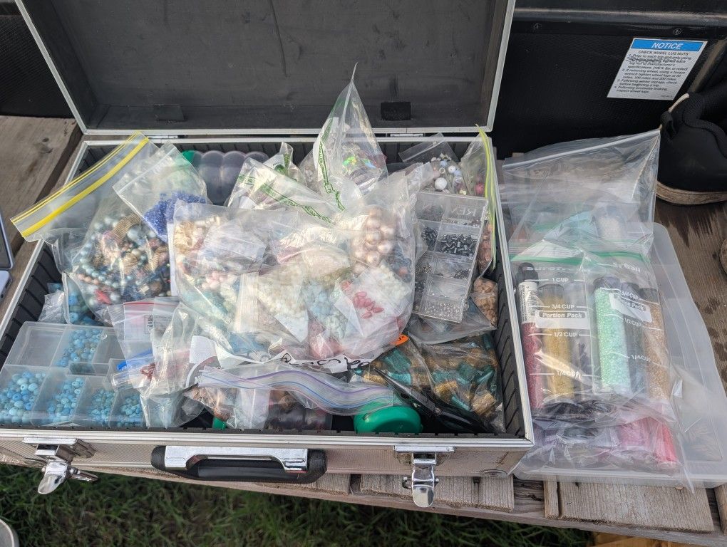 Metal suitcase full of beads and more that won't fit in it All kinds of beads