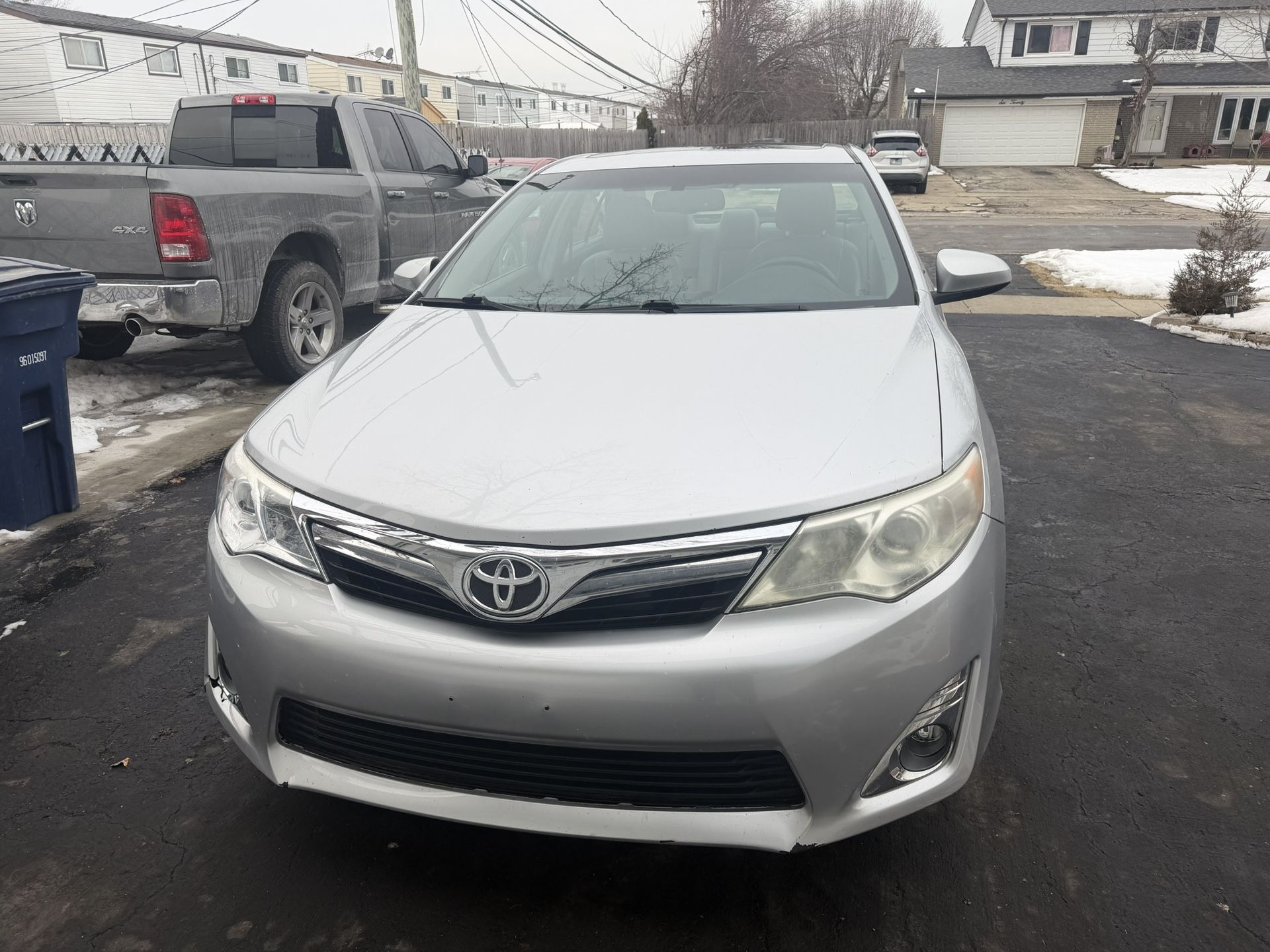 2012 Toyota Camry XLE 156k miles push start fully loaded runs and drives good suspension good no leaks no lights few scratches here and there only issue is has a right front bumper cracked insides is ok over all good running car for 17yr old car it’s decent