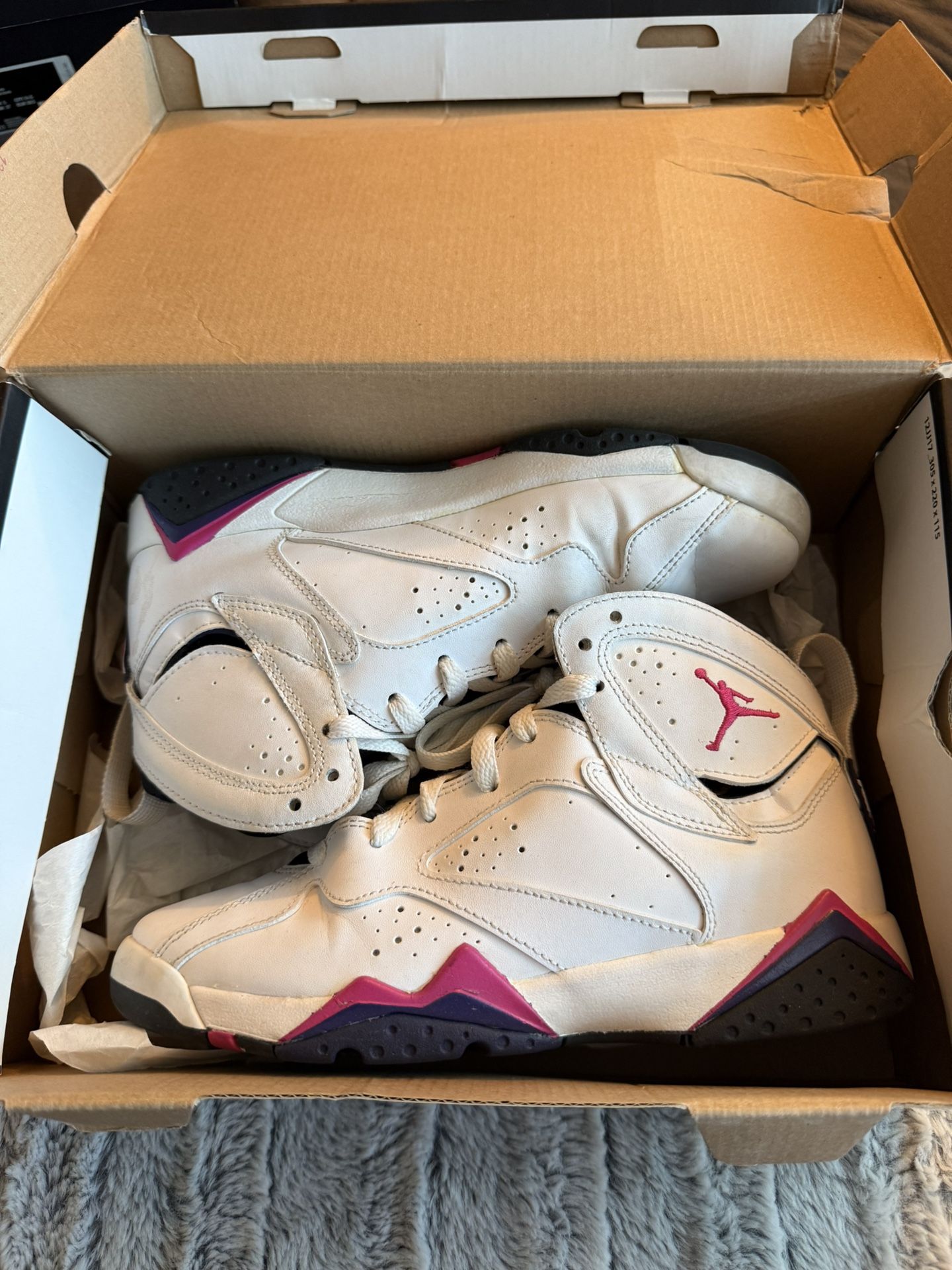 🔥 Classic pair of Girls’ Air Jordan 7 Retro GS “Fireberry” (Style 442960-117). Originally released in 2012, these are a clean and rare colorway with white leather upper, fireberry accents, and Jumpman logo details. • Size: 6Y (fits Women’s 7.5 / Men’s 6) • Colorway: White / Fireberry / Black / Night Blue • Condition: Gently worn, still in good shape (see pics) • Comes with original box • Iconic retro Jordan silhouette 💰 Asking: $130 (OBO) 📍 Local pickup only Perfect for sneakerheads, collectors, or anyone who wants a unique Jordan 7 colorway you don’t see every day.