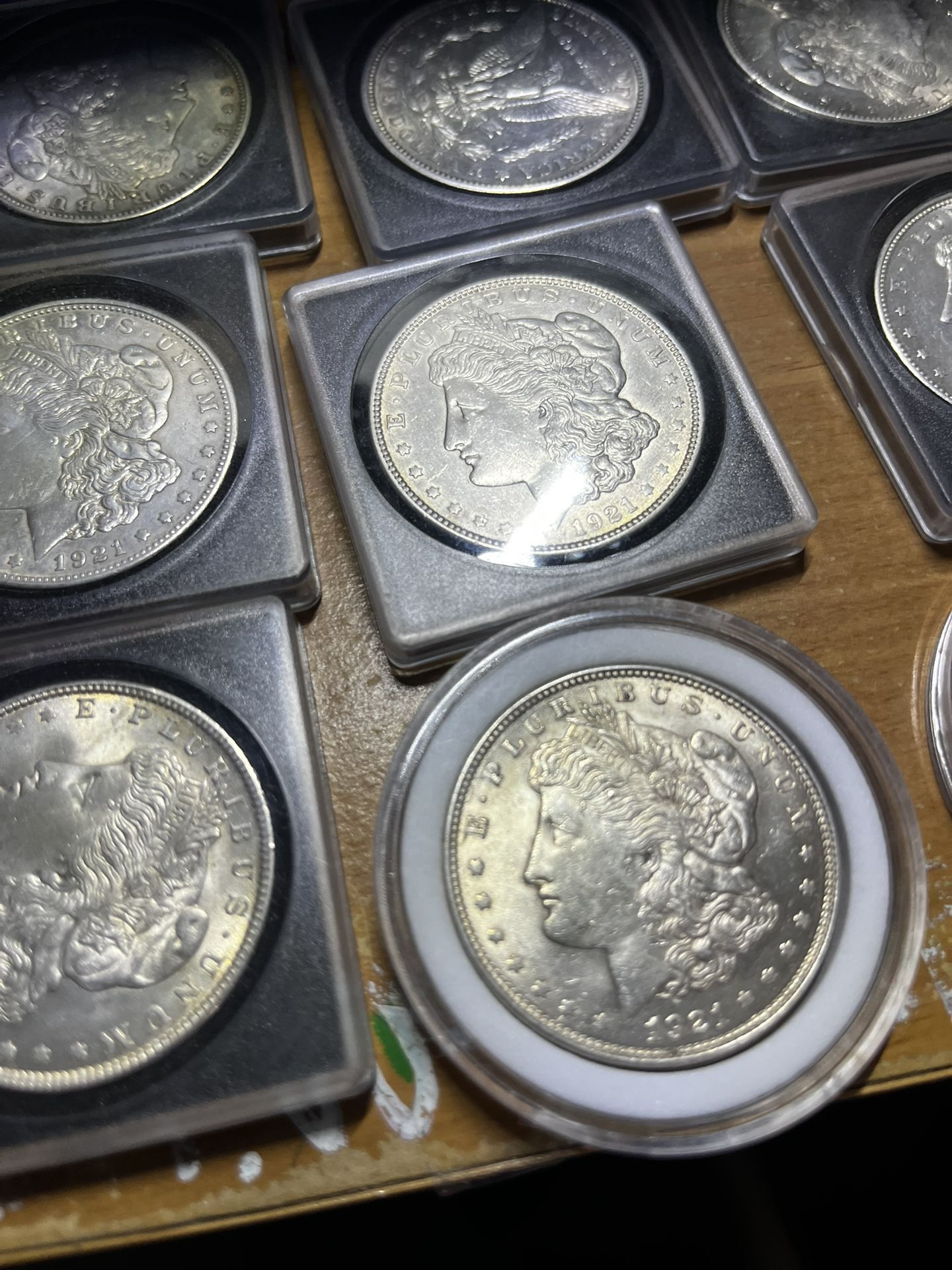 A TOTAL OF 9 MORGAN SO THATS HALF A POUND OF SILVER BEST OFFER TAKES THEM