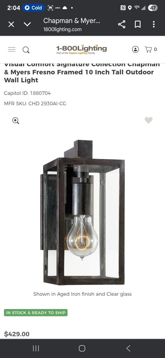 Visual Comfort Signature Collection Chapman & Myers Fresno Framed 10 Inch Tall Outdoor Wall Light