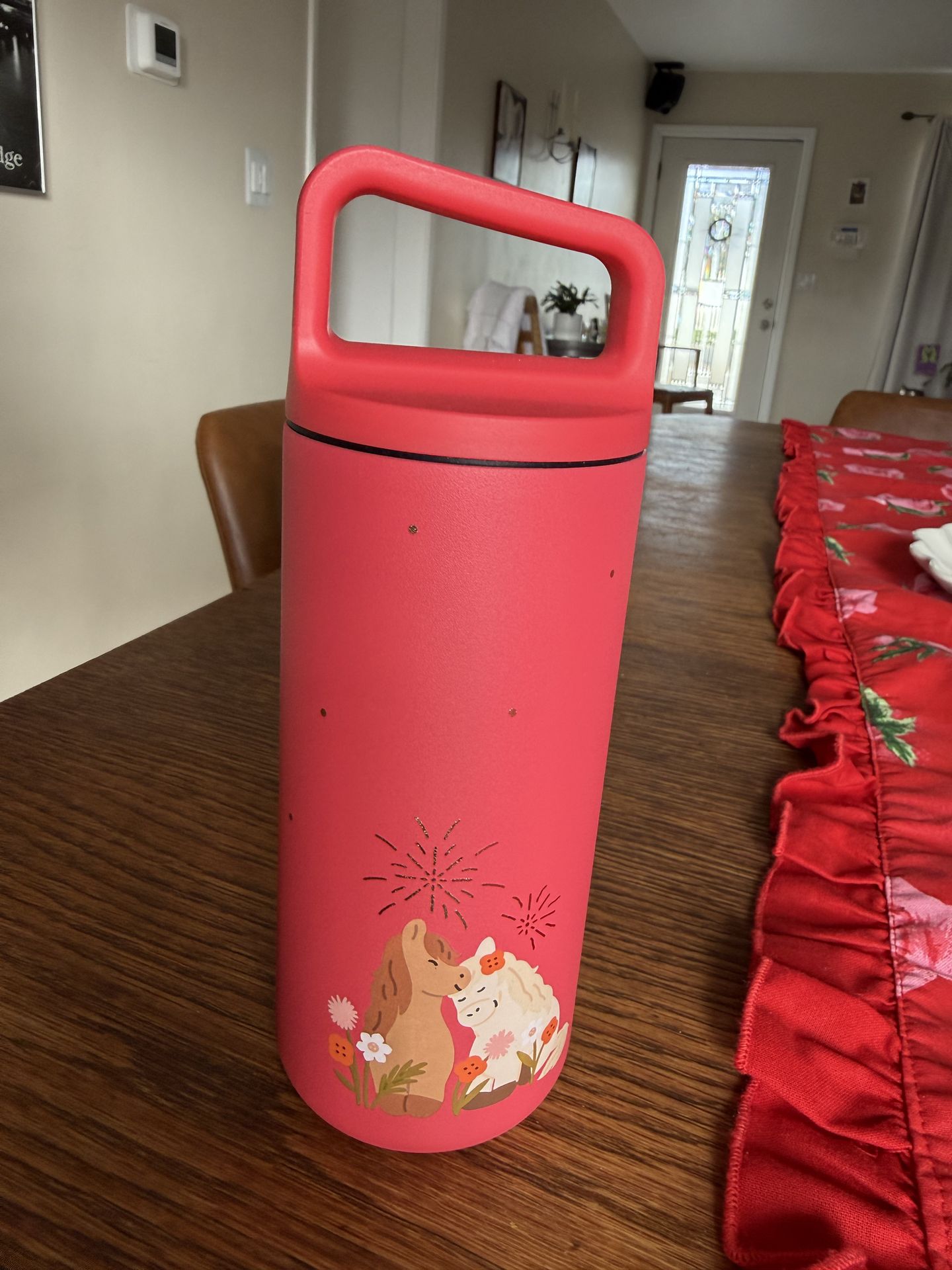 BNWT Starbucks x MiiR Collaboration Year of the Horse Stainless Steel Tumbler -12 oz. Red-Orange SS w/ pink, white & orange flowers AND delicate gold accents -Playful Pony Design -Contemporary MiiR Clean Home, No Pets ;-) Ships Same Day/Next!