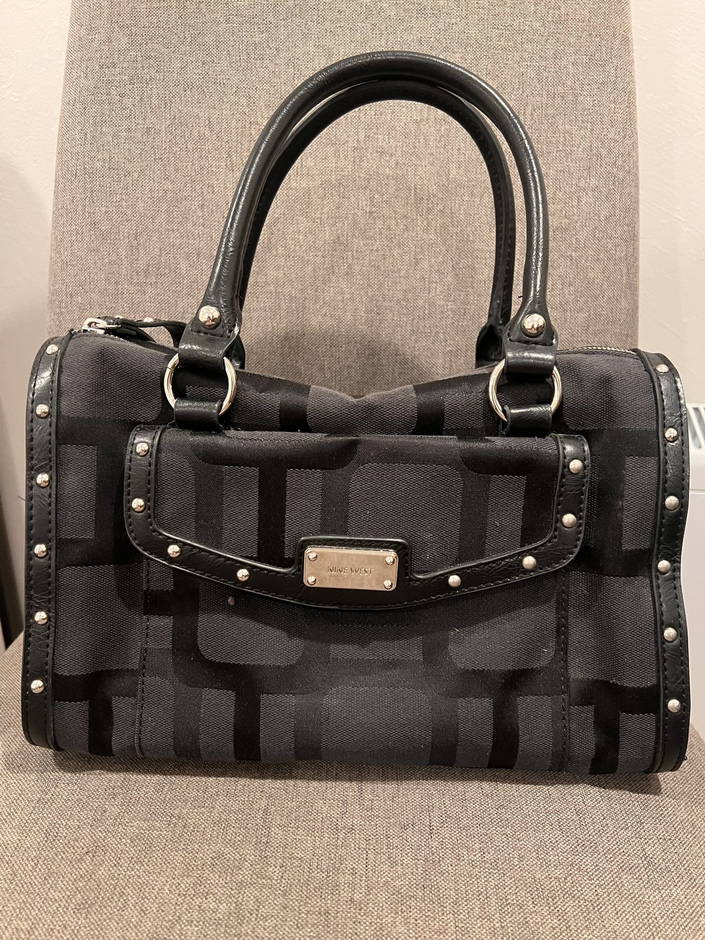 Nine West Black Ladies Handbag Shoulder Hand Bag Purse Tote Canvas