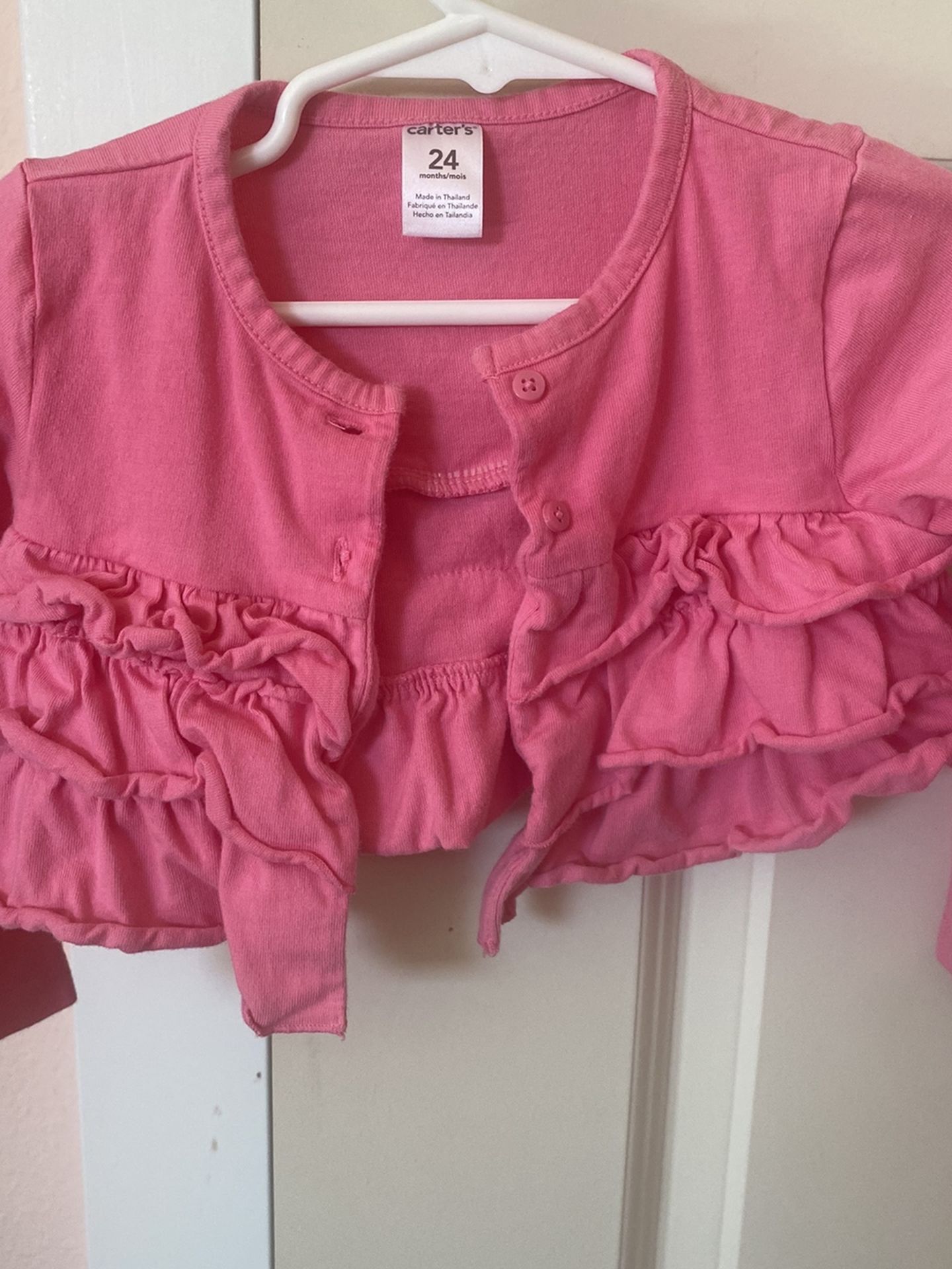 Girls 24 month pink ruffle sweater. Carter’s brand. Adorable over summer dresses. Pet and smoke free home. Porch pickup.