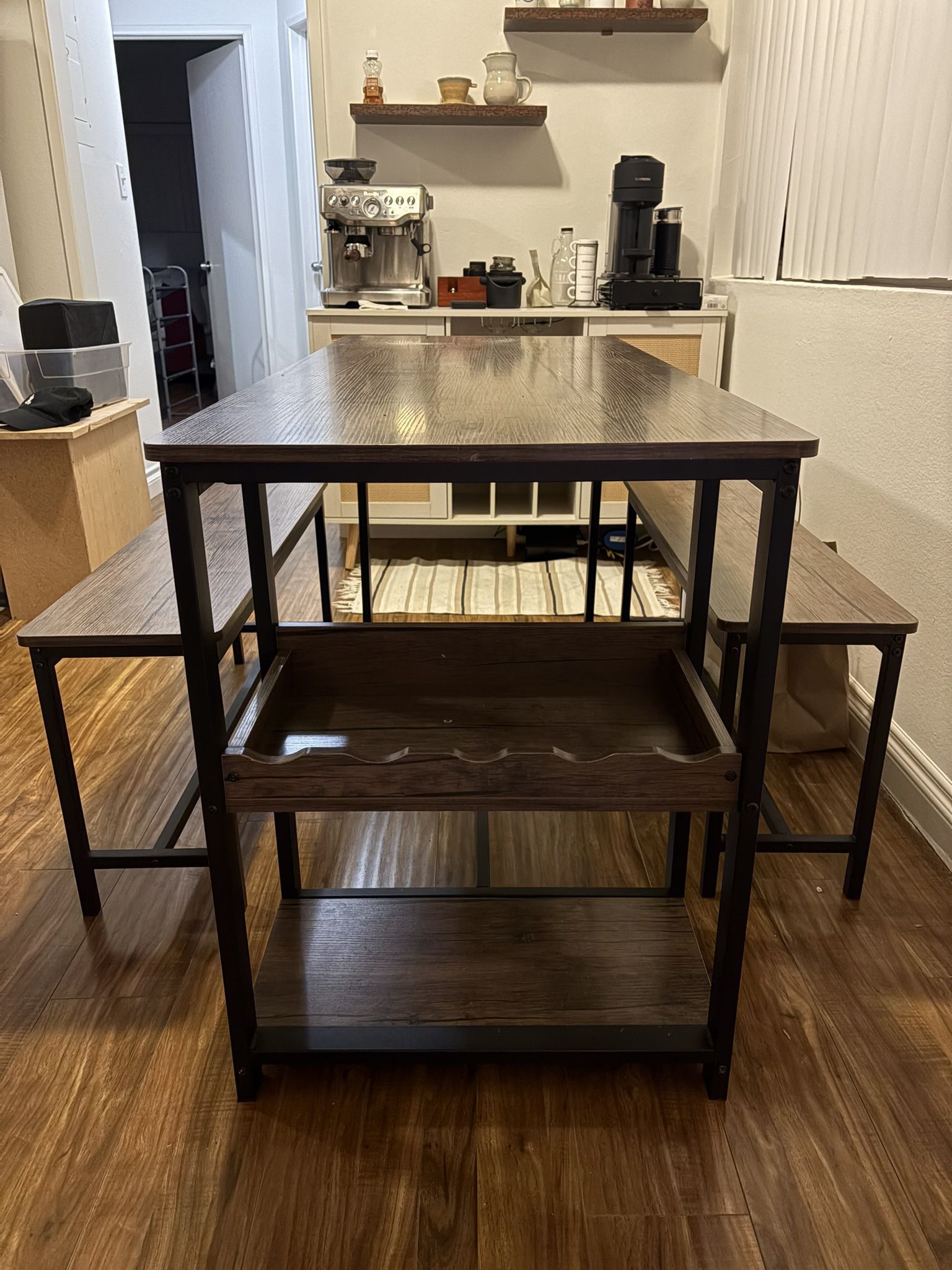 Seats are benches. Used 1 year, still in good condition. Comes assembled.