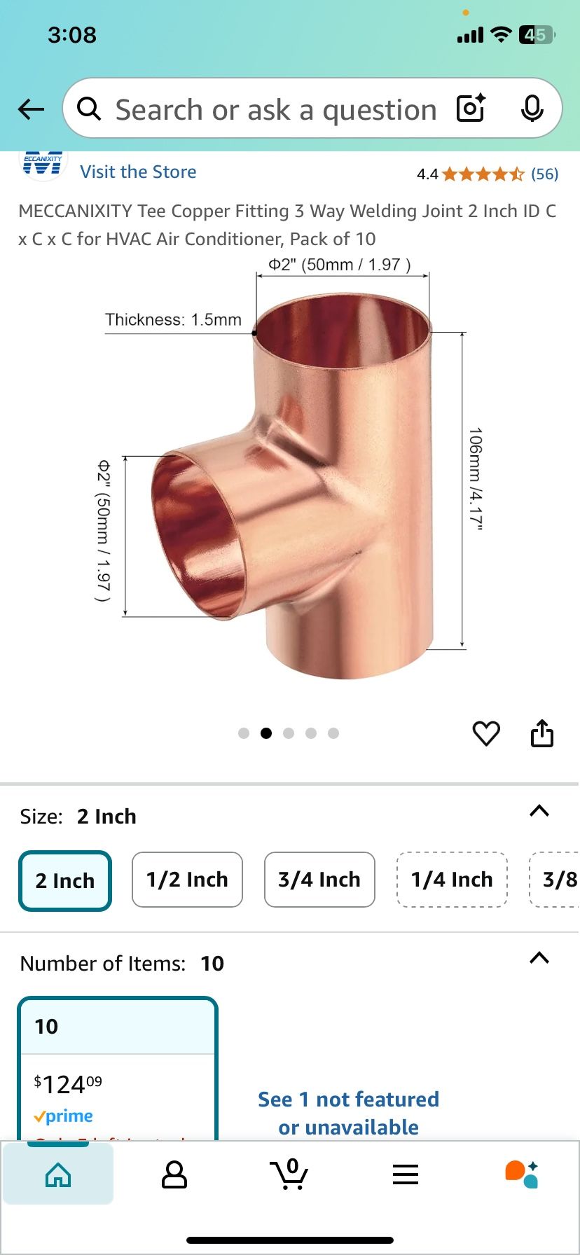 Tee Copper Fitting 3 Way Welding Joint 2 Inch ID C x C x C for HVAC Air Conditioner, Pack of 10