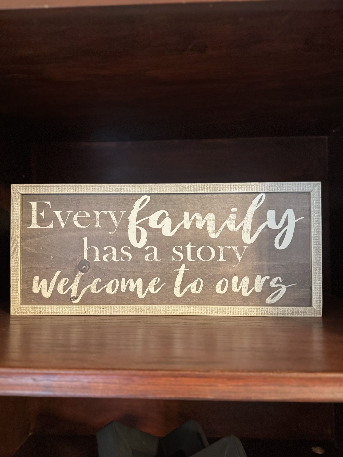 A nice family wall art that can be used on a shelf or on a wall, neutral colors