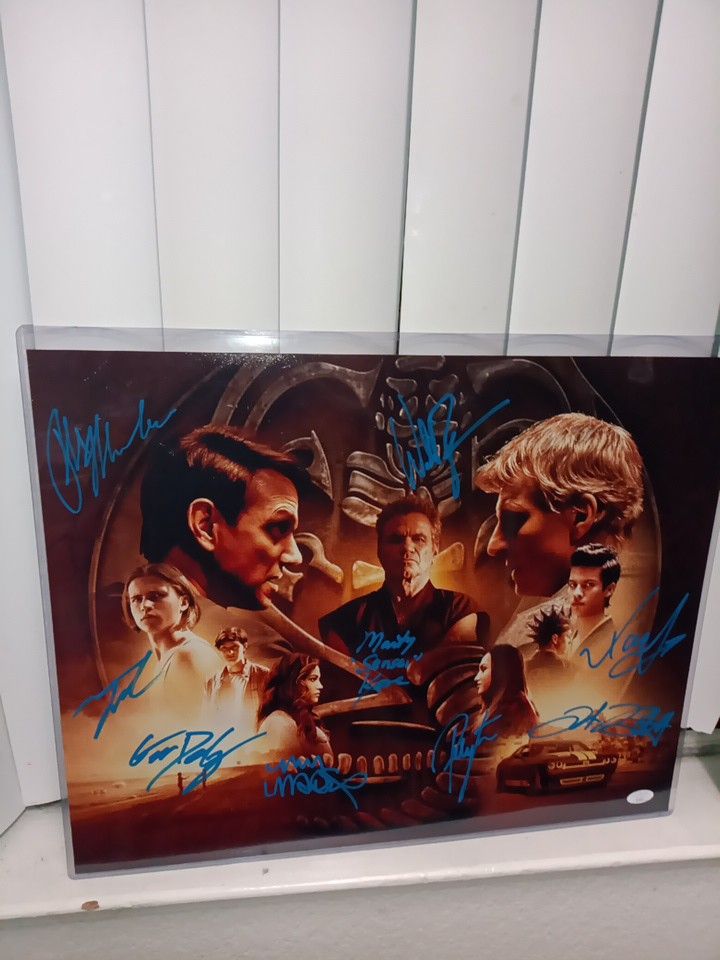 Karate. Kid. Cobra. Kai. Cast. Signed. Poster. Art 20. X. 16. Unframed. In. Top. Loader. Holder JSA. James. Spence. Authentication. Card 9. Signatures.