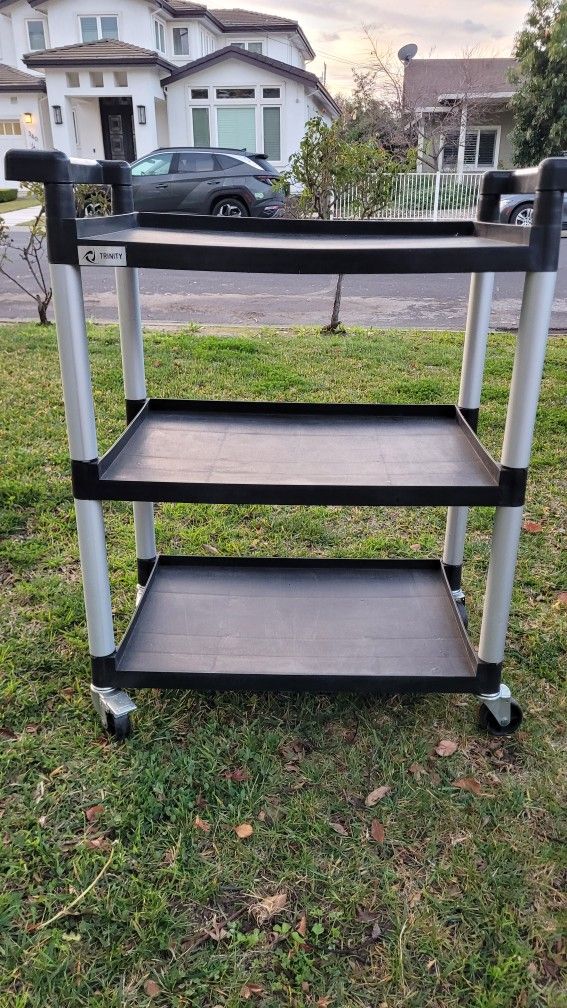3 tier rolling cart with locking wheels. Lightweight, but strong. 31"w x 16"d x 37"h Great condition try to buy new for under $150! Get it here for 20 bucks.