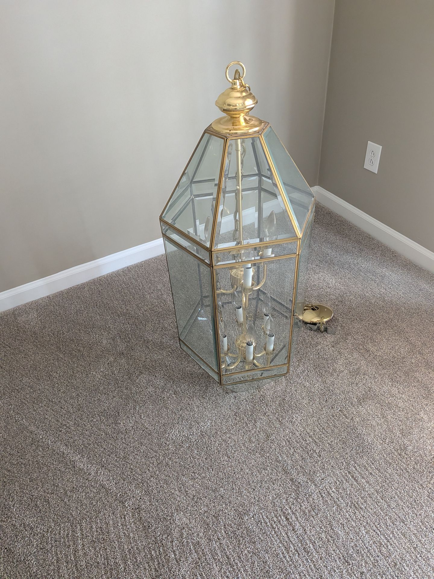 Great condition. Brass and glass. 5 bulbs at bottom 3 at top. 38" tall. Make an offer