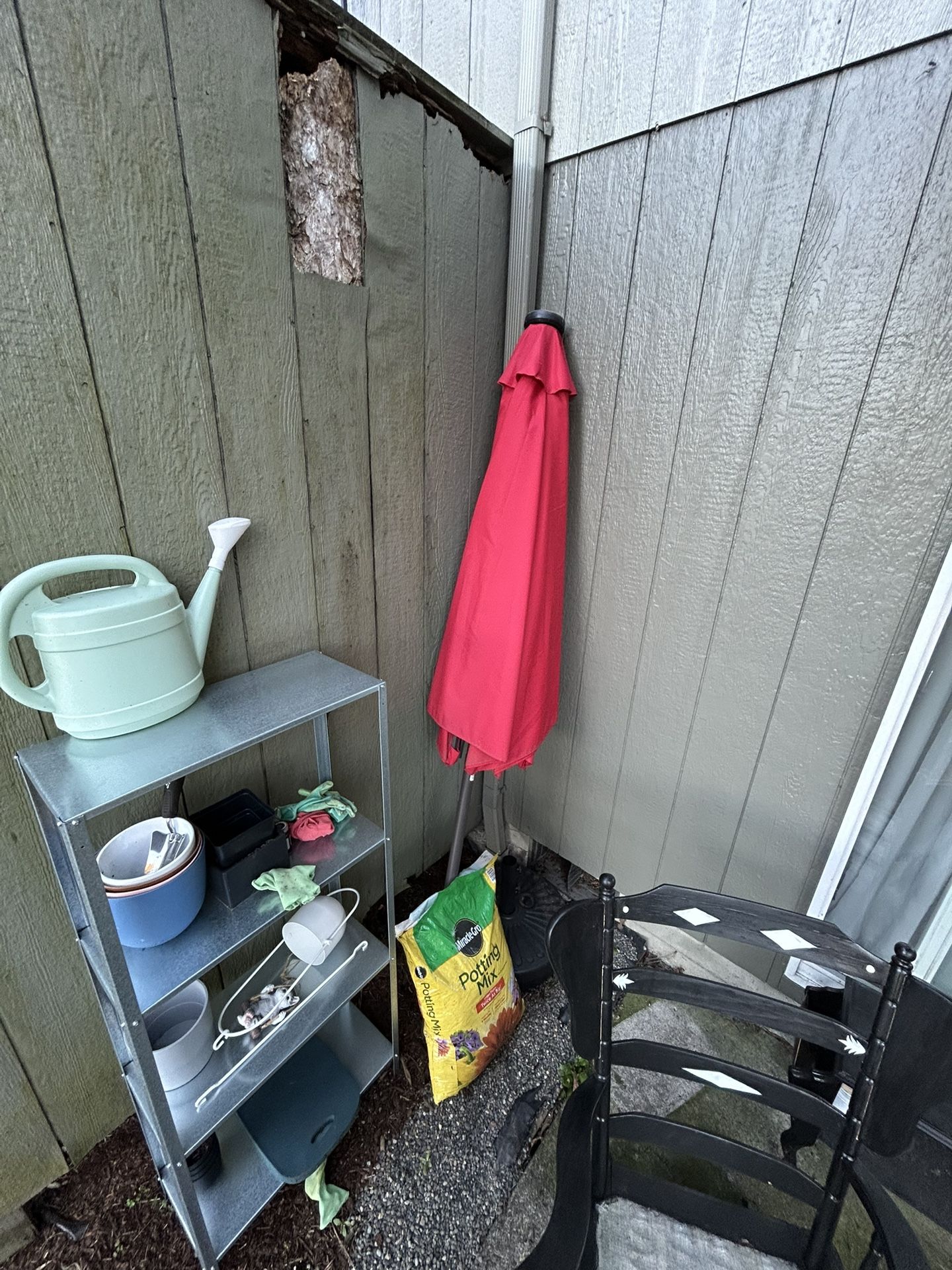 Red solar umbrella with stand - still works just didnt work for my windy back patio trying to get rid of for a good price :)
