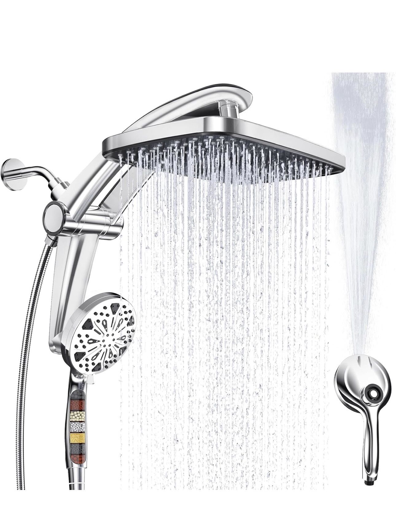 Rain Shower Head with Handheld High Pressure rainfall Shower Heads with Handheld Spray Combo Adjustable one-piece stand daul shower head Built-in Magnetic Docking and Power Jets. In like new condition