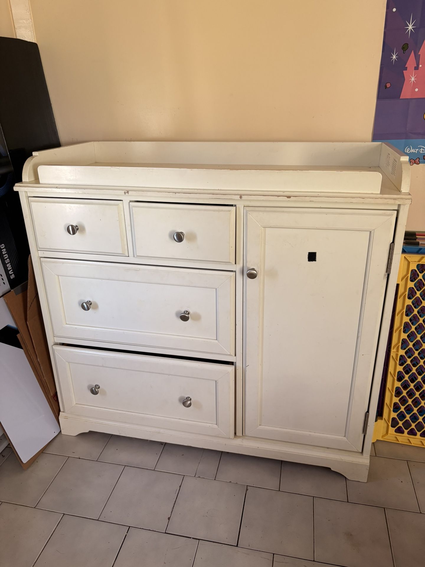 Pottery Barn Dresser. It does have the top you can use as a changing table but can very easily be used just as a normal dresser. Normal wear. Originally $400+.