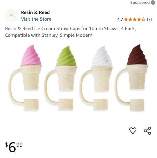 New In Package. Pack Of 4 ICE 🍦 Cream Cone Straw Toppers. THEY FIT ON OTHER CUP* BESIDES STANLEY CUPS CASH PICKUP ONLY