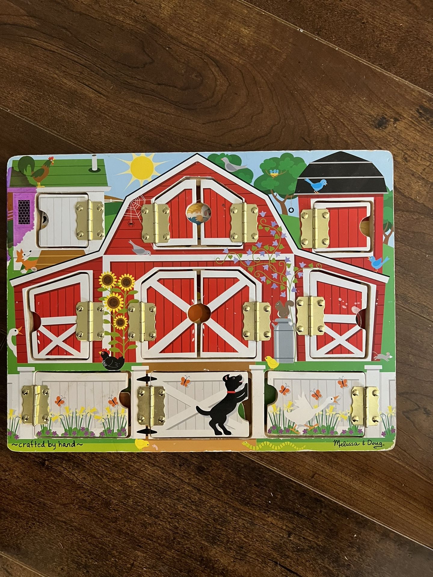 Super cute flip open farm puzzle. In each slot it has a farm animal. Great for toddlers I have lots of learning toys and books check out my offers.