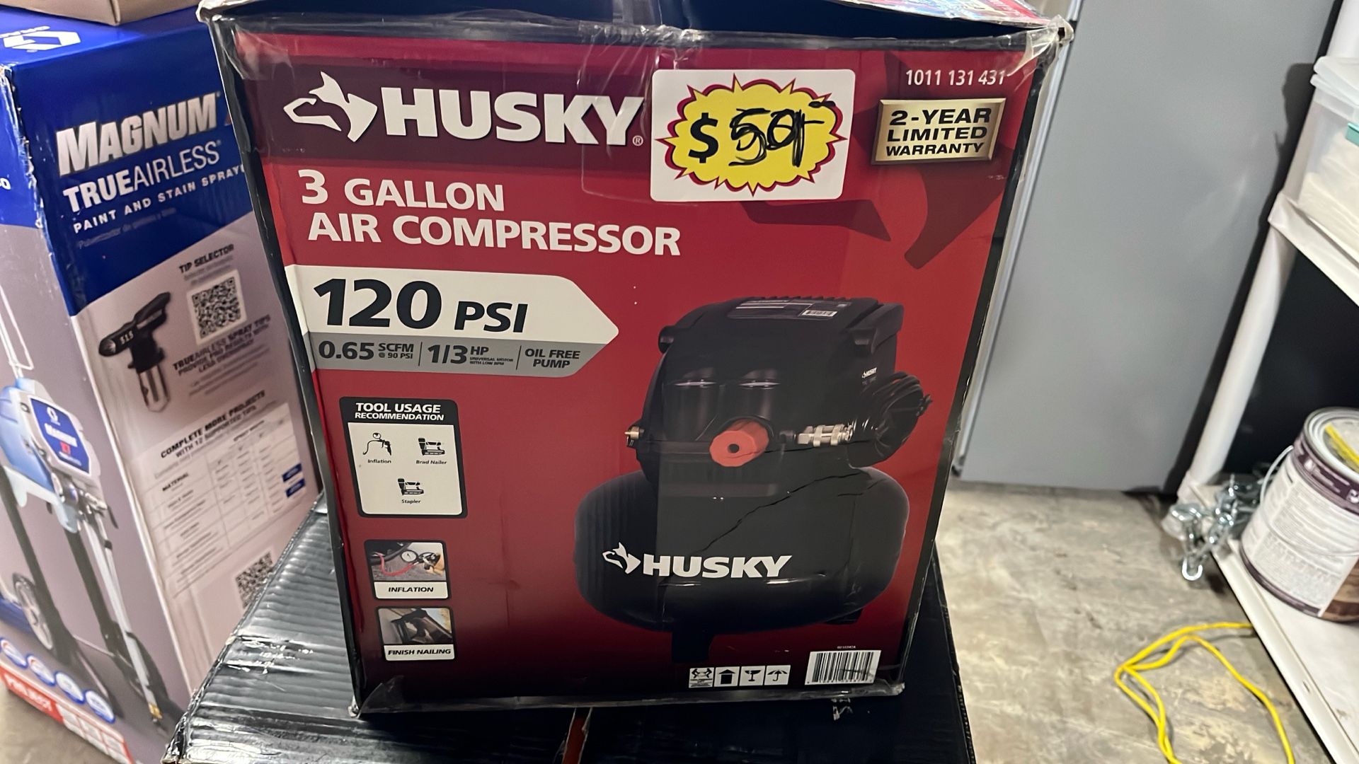 Husky 3 Gal. 120 PSI Portable Electric Oil-Free Light Duty Pancake Air Compressor with Fold Down Handle and 1-Quick Coupler