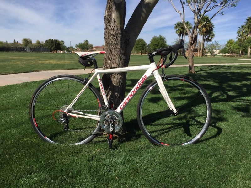 UPDATE***06/10/17 this is getting some changes and price dropping. Stay tune. Hello all, well never thought this would happen but we are letting go of our beloved 2013 Cannondale 6 48cm women's specific Caad 10! This id my wife's trusty steed which she loves but I upgraded her bike and not by her choice so she is very much on the fence about this. This bike has approximately 3K miles of gentle use since my wife is not an aggressive rider. This bike was well taken care of like we do all our bikes. There are two small nicks on the seatpost I tried to capture on camera but they make no issues with performance of the bike. There's a smudge on the downtube that I tried to capture that I could not remove but again it is all just looks. Drive side crank arm has nicks but no damage to the carbon. The wheels pictured were her back up wheels and has very few miles on them. That is the same for the tires as you can see in the pictures. I will be trying to convince her to keep them so if you want them act fast π As you can tell the bike was upgraded pretty much on everything down to the BB30 bearings. Here are all the stats on the bike : Women's specific 48cm Drivetrain is all Ultegra 10 speed including the brakes Cranks are FSA SL-K light Carbon arms with FSA 50/34 chain rings Cassette is 10 speed Ultegra 11-28 and chain Shifting/braking cables are Jagwire Pro Wheels are DT Swiss 1600RR tubeless ready Tires are Continental Grand Prix 4000S 25mm Handlebars are 3T Ergonova Pro 38cm(C to C) Seatpost is Cannondale C2 carbon Stem is Cannondale C3 90mm Lizard Skin 2.5mm bar tape( coming unraveled but useable, wouldn't hurt to get a new one ) The fork and seatpost were never cut. Please note: the Ultegra pedals and Cannondale seat bag ARE NOT included! For the condition of the bike and all the upgrades I feel the $1000(CASH ONLY) asking price is pretty reasonable but will consider reasonable offers. Please take a look at the pictures and if you have any other questions feel free to ask . Please only serious buyer inquiries, save me and you time. I...