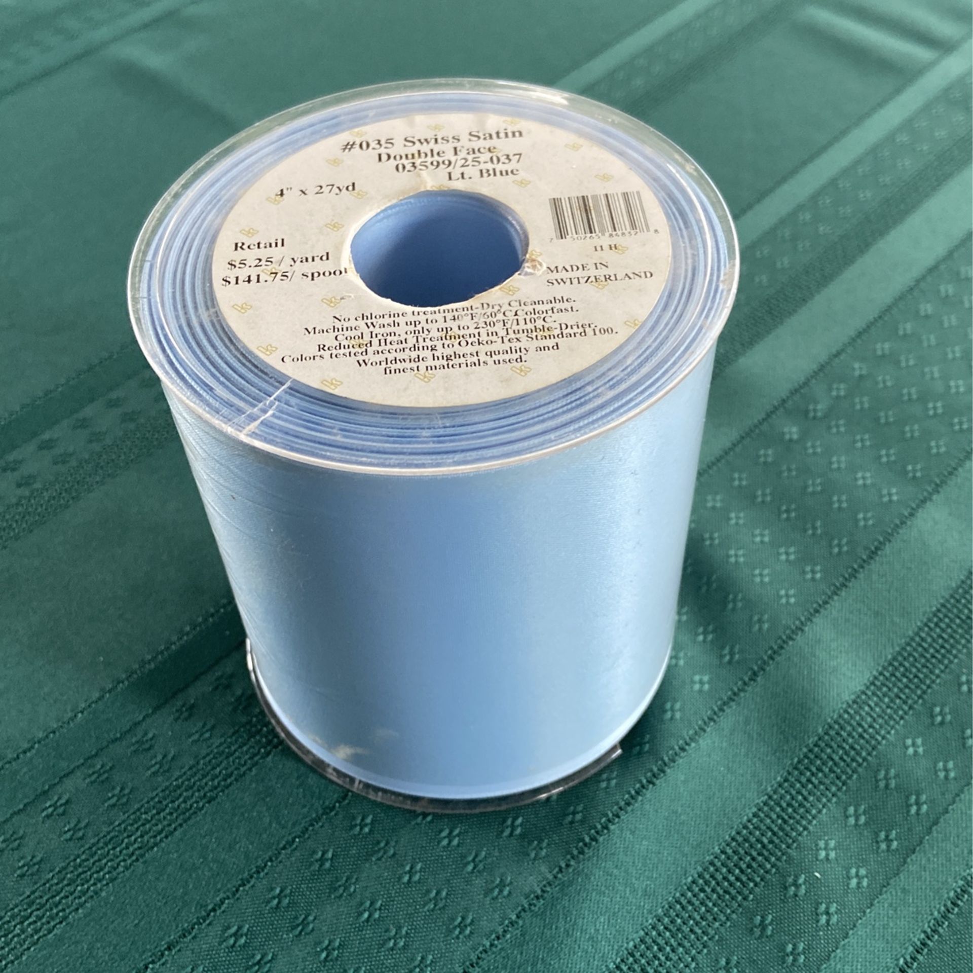 Swiss Satin Double Face Lt Blue ribbon spool. Made in Switzerland 4” x 27yd Extra spool from wedding, Never used Smoke-free home Cash only Buyer to pick up
