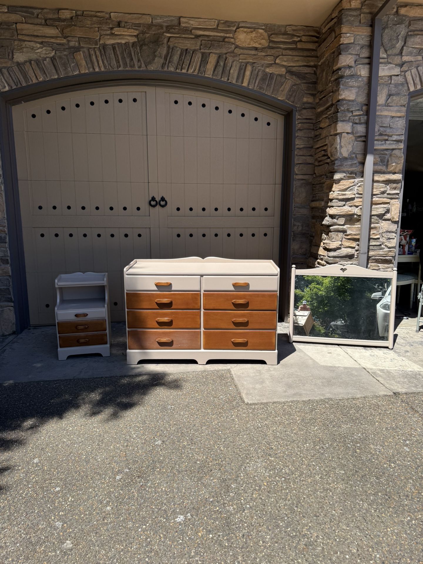 Beautiful 3-piece set from Beal’s Maple Furnishings (Portland, Maine), freshly painted in a soft taupe for a clean, modern refresh. Built from solid maple wood with original sculpted handles and smooth-gliding drawers. Dovetail craftsman drawers - no particle board or flimsy materials here. Dimensions Dresser: 54 long, 20 deep, 35 tall Nightstand: 18 long, 15 deep, 29 tall