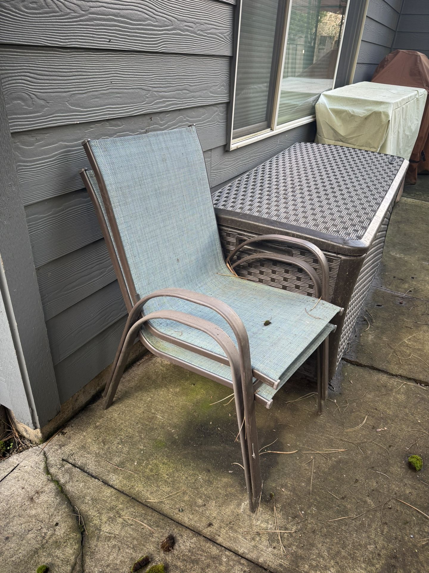 Two stackable outdoor patio chairs available at no cost. They have cosmetic wear from being stored outside, but they are still functional for seating or great candidates for a DIY refresh, repaint, or re-slinging project. Ideal for: • Spare backyard seating • Garden or fire pit area • Workshop or garage seating • Upcycling or repurposing First come, first served.
