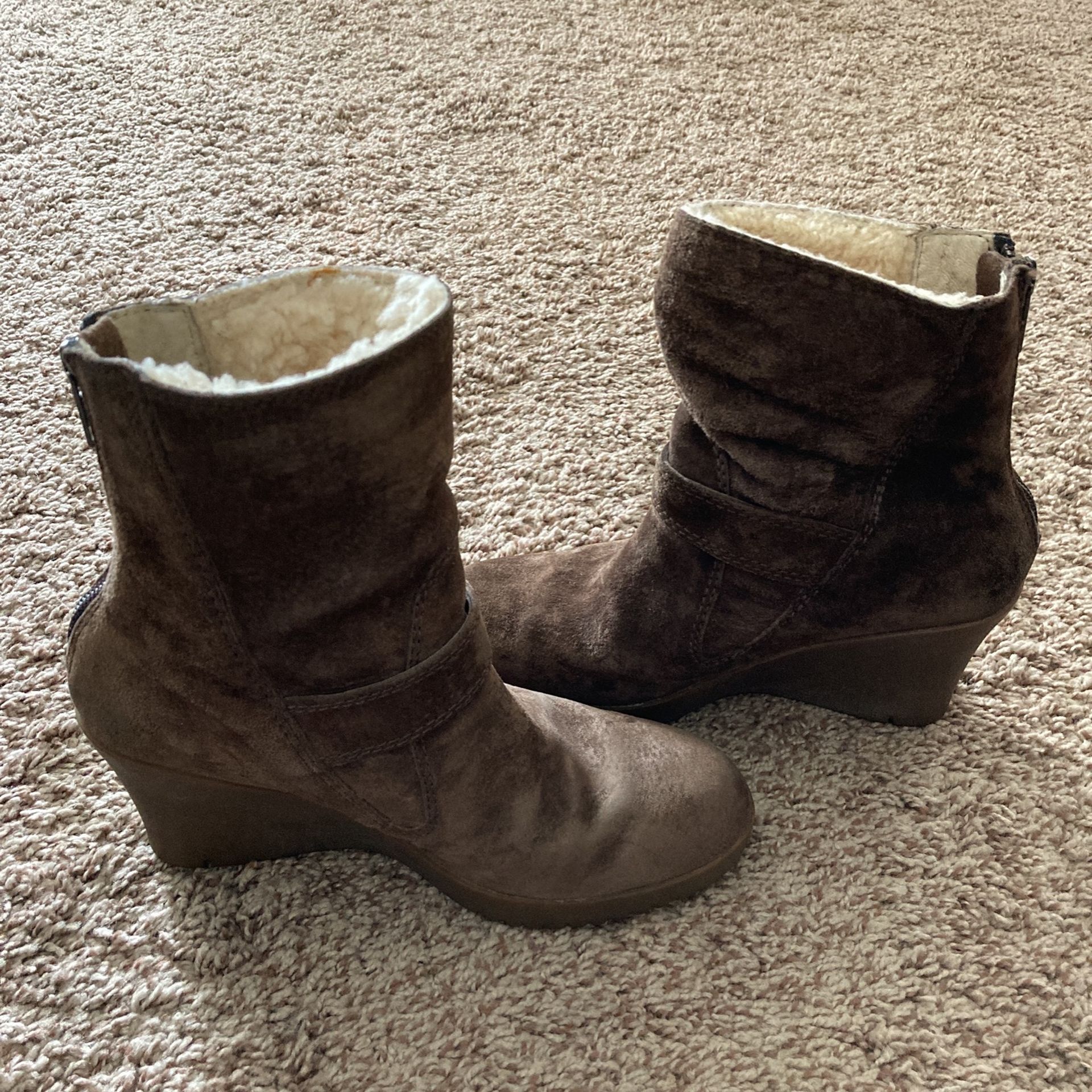 UGG Australia MOCHA BROWN SUEDE GISSELLA WEDGE SHEARLING ANKLE BOOTS 5593 Size 5