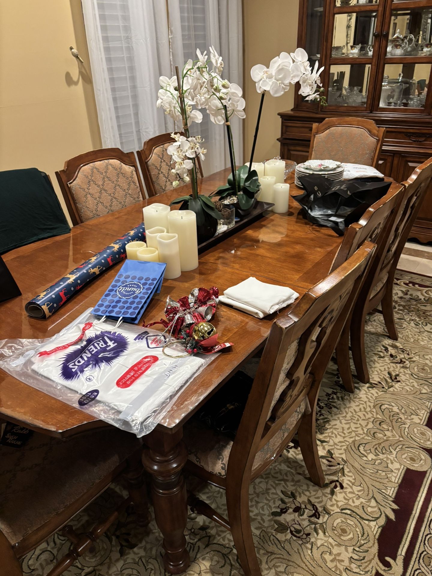 Dining table with eight chairs in excellent condition protective film still on the table spotless make an offer