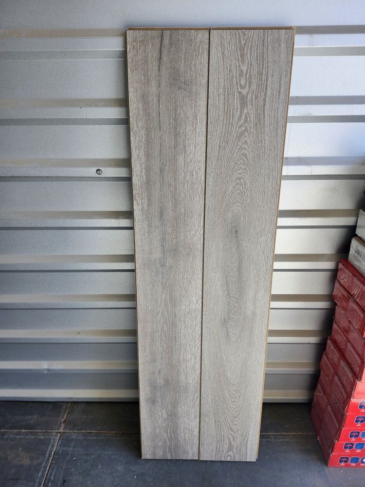 $1.75 per sqft, 624 sqft remaining. 12mm Thick, 7.56 in. Width x 50.63 in. Length planks Wood planks have beveled edges Attached 2mm underlayment reduces sound and increases ease of installation Select radiant heating may be used Can be installed over smooth, flat, dry surfaces: concrete, tile, vinyl, and wood
