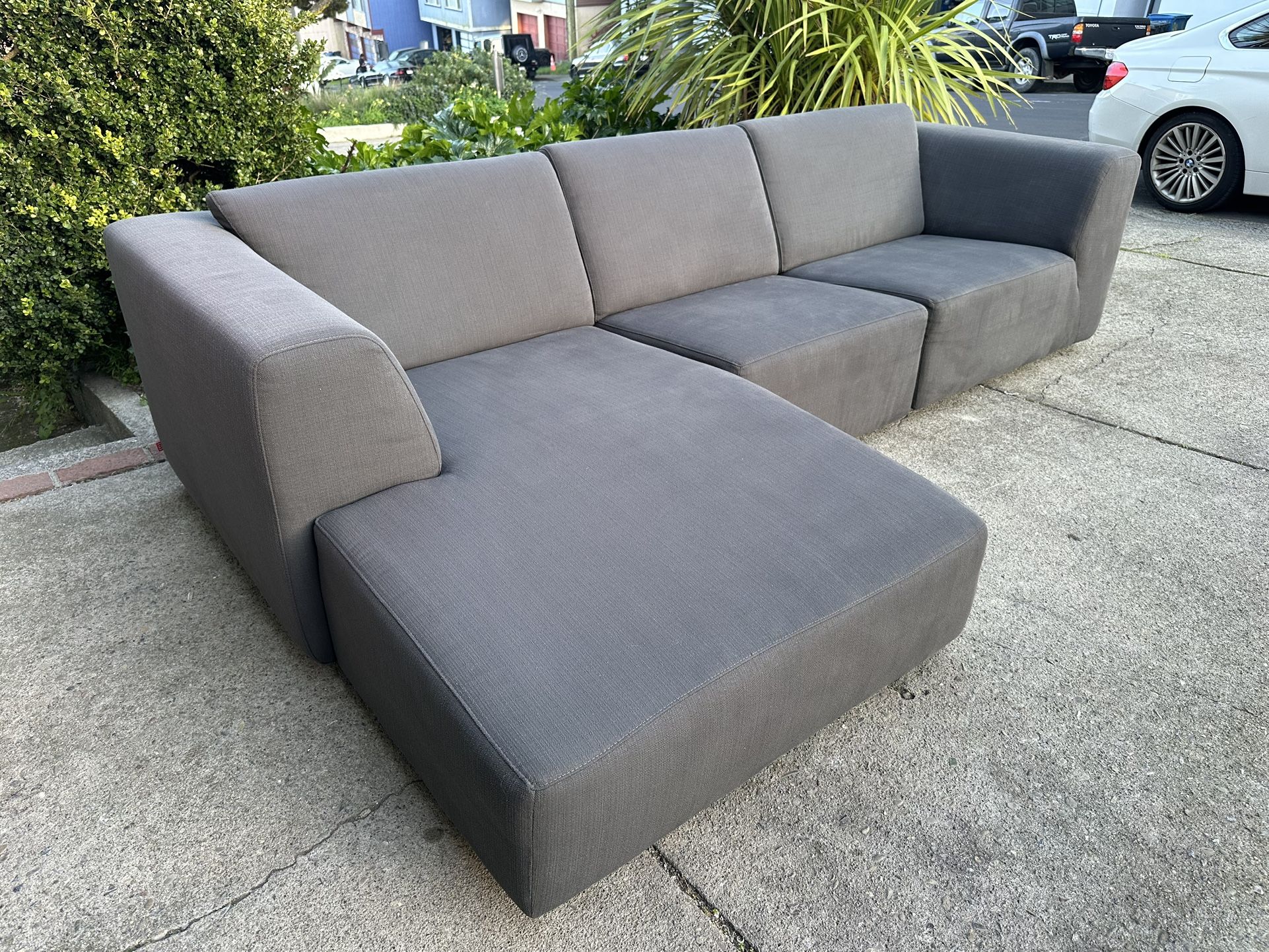 Modern Dark gray EQ3 Morten 3-pieces sectional couch in very good condition, It has some discoloration on the chaise side, but overall it's in very good condition. Cleaned and washed! No damage and no stains. Original price around $4k. https://offerup.com/redirect/?o=aHR0cHM6Ly93d3cuZXEzLmNvbS91cy9lbi9wcm9kdWN0L2NrM2RyOTR0bzFmZzMwMTc4N2kwdTg4amMvbGl2aW5nL3NlYXRpbmcvc2VjdGlvbmFscy9tb3J0ZW4tMy1waWVjZS1zZWN0aW9uYWwtc29mYS13aXRoLWNoYWlzZS1mYWJyaWMtbGVmdC1oYW5kLWZhY2luZy1jaGFpc2UtbGVmdC1oYW5kLWZhY2luZy1jaGFpc2UtYmxhY2stc2FuZC1hcm1sZXNzLWNoYWlyLWJsYWNrLXNhbmQtcmlnaHQtaGFuZC1mYWNpbmctY29ybmVyLXNlYXQtYmxhY2stc2FuZD9zcnNsdGlkPUFmbUJPb3JrMUxsSmNrRzd3SjZZQWR6aldaRVoyNm0wSTh4dFpBbEl0SEtZNk01eFlQQ0JSY3R2 Measurements: 114”w x 65”d x 31h (see pictures for more measurements) Free delivery within 15 miles. (Note: Free delivery is to the door of the house or building, if you need help to enter it, we do it for an extra charge). We accept credit cards with an additional 3% charge.