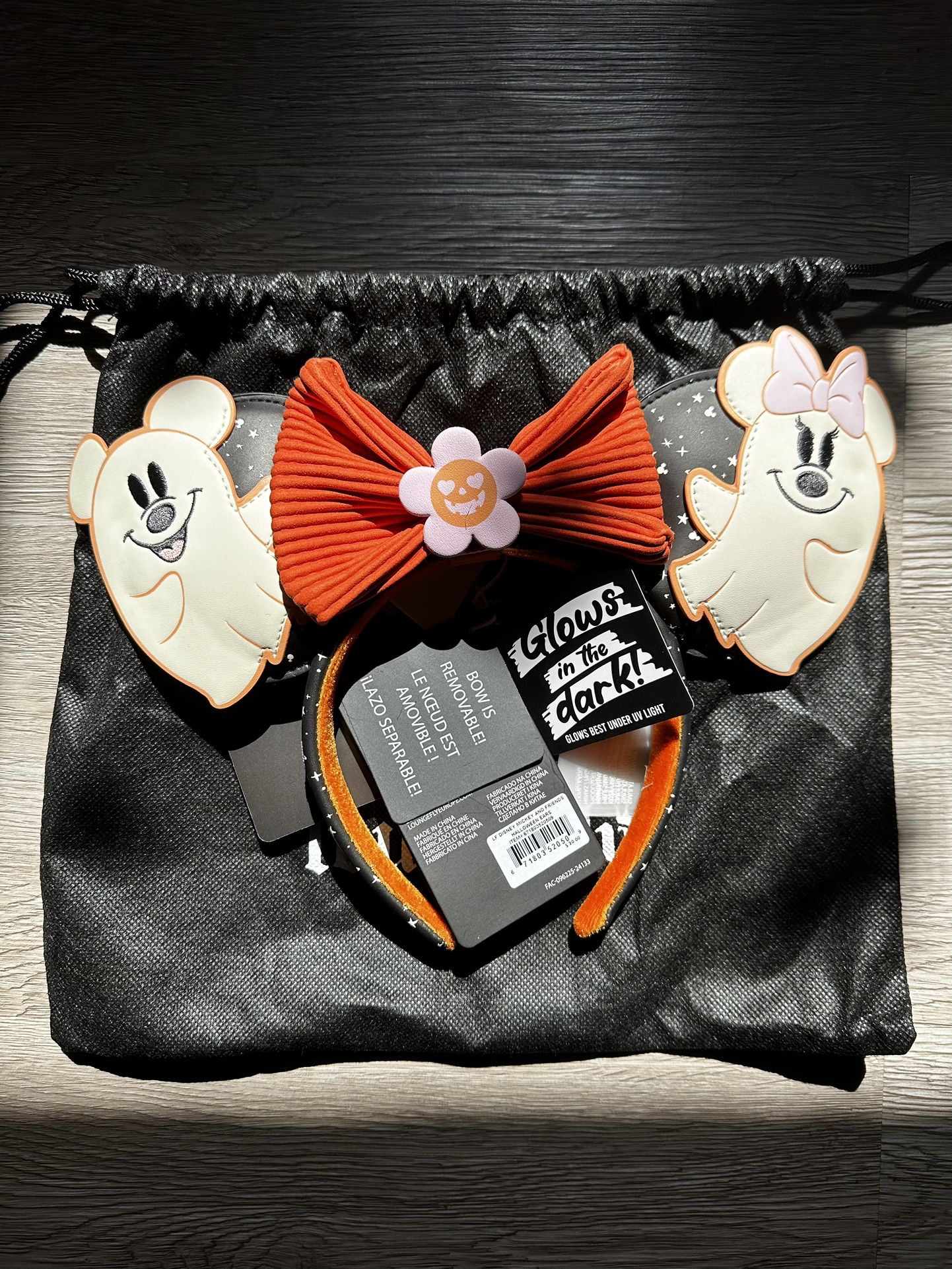 Loungefly Mickey and Minnie Ghost Ears New with Tags Glow in the Dark Removable Bow Perfect for Halloween Disneyland Season Oogie Boogie Nights