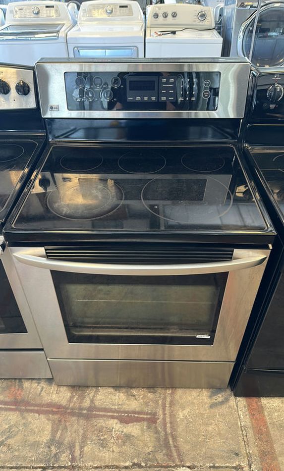 Get ready to cook like a professional with this LG Electric Range. The Stainless Steel finish adds a sophisticated touch to any kitchen. Beside its sleek design, the stove offers functionalities like Convection cooking and Self-Clean, ideal for busy lifestyles. It maintains its large capacity and has digital and knob controls for precision cooking. Comes with 60-day warranty. Same day delivery available. DM / Message us for more info. Hablamos español.