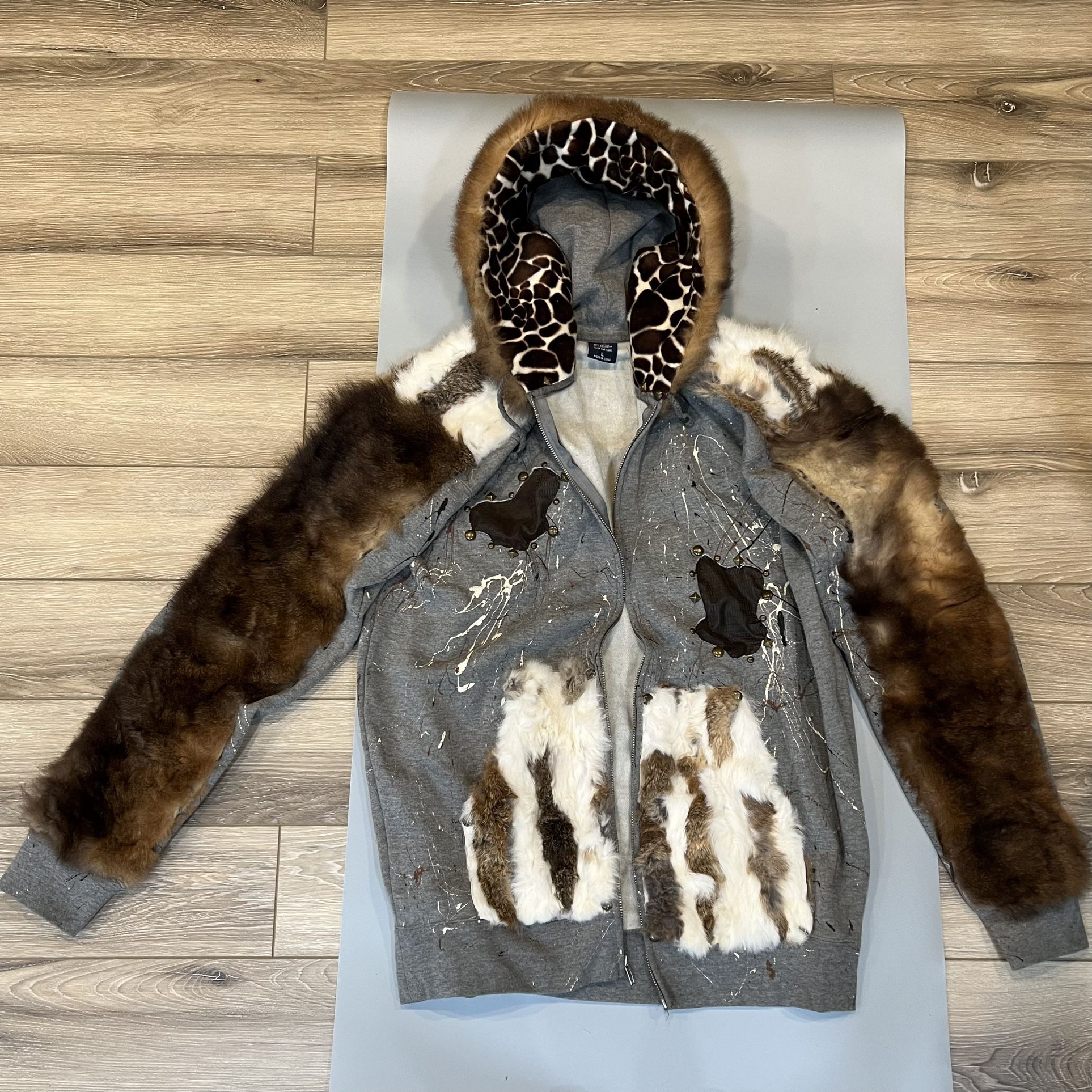 Hand Made Design Hoodie With Fur and Leather Men’s Size L