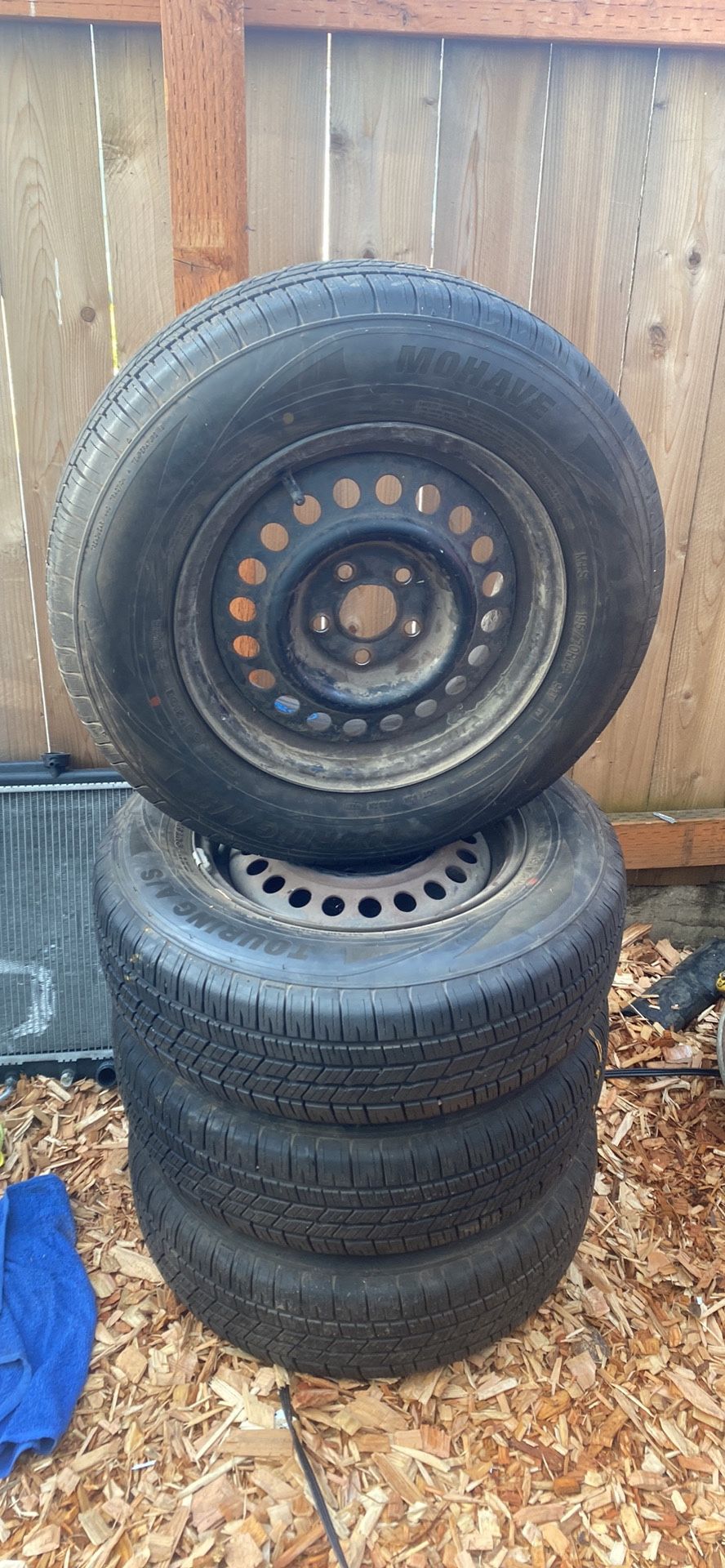 195/70R14 5 lug steelies for sale very good tread on these . came off of a late 90s corolla have hubcaps that can come with obo or can trade for coupe bmw e36 parts
